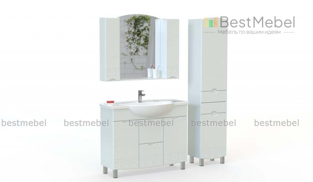 Комплект для ванной комнаты Прия 1 BMS станет отличным выбором для просторных помещений. Композиция включает в себя широкую напольную тумбу под раковину, оборудованную распашными и выдвижными отделениями, большое навесное зеркало с боковыми шкафчиками для хранения мелочей и высокий комбинированный пенал. Гладкие, чуть скругленные фасады предметов легко моются и надолго сохраняют эстетичный вид. Купить комплект для ванной комнаты Прия 1 BMS по выгодной цене вы сможете в нашем интернет-магазине.