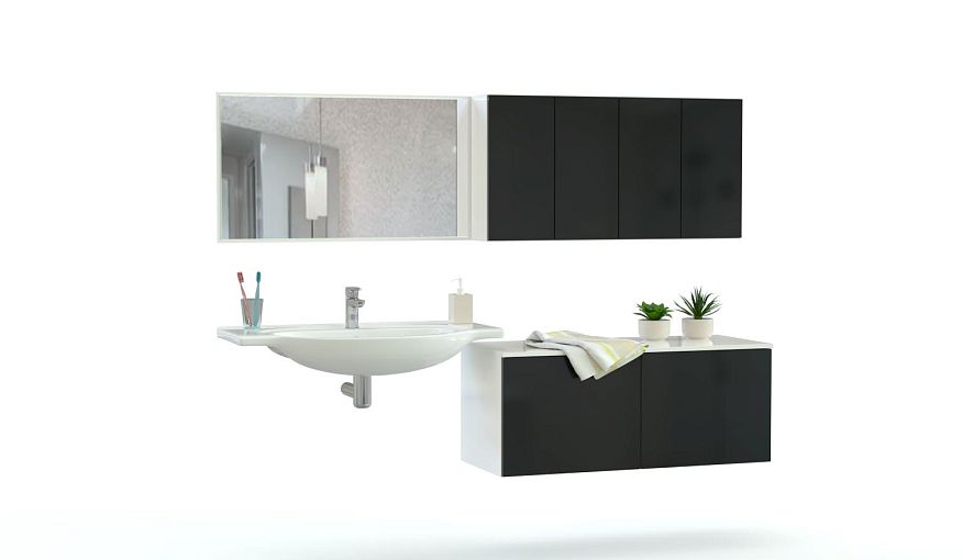 Комплект для ванной Коста 1 BMS состоит из геометричных модулей с глухими глянцевыми фасадами. Подвесная композиция включает в себя распашную тумбу, широкое зеркало с подсветкой и шкафы для хранения гигиенических принадлежностей. Контрастное цветовое решение превращает комплект в центральный элемент дизайна просторной ванной комнаты. Купить комплект для ванной Коста 1 BMS приглашаем в наш интернет-магазин с возможностью изготовления по индивидуальным размерам.