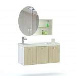 Мебель для ванной Бим 1 BMS – это современный дизайн и плавные, эргономичные линии. Подвесная композиция включает в себя широкую радиусную тумбу под раковину, оборудованную тремя ящиками, и овальное зеркало, дополненное боковыми открытыми полочками для гигиенических средств. Предметы выполнены в древесном цвете с хромированной фурнитурой, влагостойкие поверхности просты в уходе и долговечны. Купить мебель для ванной Бим 1 BMS приглашаем в наш интернет-магазин.