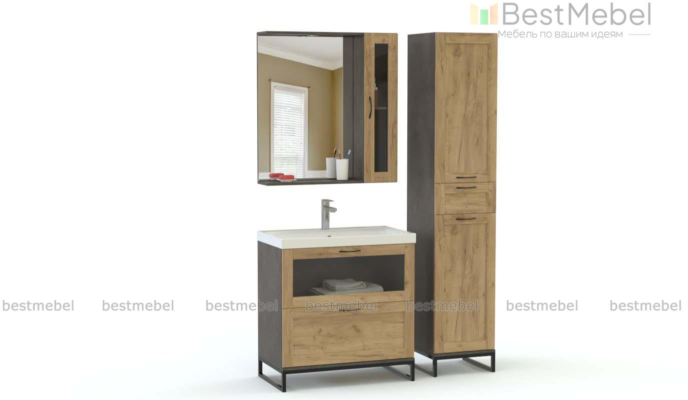 Мебель для ванной Биттер 2 BMS поможет оборудовать комнату в едином стиле. Популярная лофтовая композиция включает в себя напольную тумбу под раковину с двумя выдвижными ящиками, зеркало с подсветкой, открытой полкой и шкафчиком для хранения мелочей и высокий комбинированный пенал. В оформлении предметов сочетаются поверхности нейтрального белого и холодного голубого оттенков с контрастным металлическим профилем. Купить мебель для ванной Биттер 2 BMS приглашаем в наш интернет-магазин.