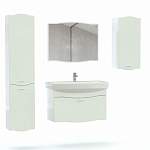 Мебель для ванной комнаты Синти 1 BMS с плавно вырезанными белоснежными фасадами поможет создать комфортный современный интерьер, в котором нет ничего лишнего. Стильная композиция объединила тумбу под раковину с выдвижным ящиком для хранения уходовых средств, двухдверный пенал, распашной шкафчик и элегантное зеркало в узкой раме. Подвесная конструкция модулей экономит полезную площадь и облегчает уборку. Купить мебель для ванной комнаты Синти 1 BMS приглашаем на сайт нашего интернет-магазина.