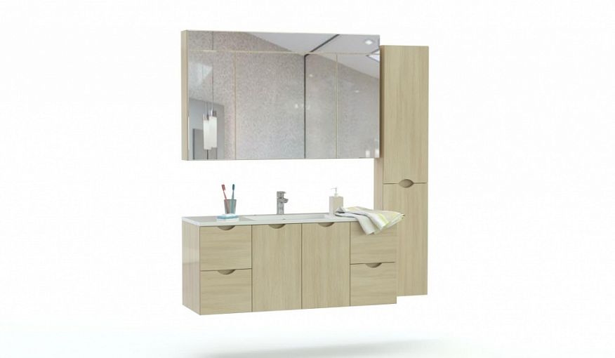 Мебель для ванной комнаты Восторг 1 BMS гармонично впишется в современные интерьеры и сделает уход за собой максимально комфортным. В комплект входят широкая тумба под раковину с распашными и выдвижными отделениями, двухдверный пенал с полками и зеркальный шкаф. Предметы имеют практичную подвесную конструкцию и выполнены в светлых древесных тонах, дверцы оснащены удобными ручками-вырезами. Купить мебель для ванной комнаты Восторг 1 BMS приглашаем в наш интернет-магазин с учетом необходимых размеров.