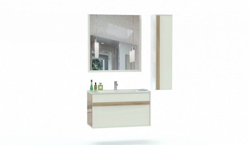 Мебель для ванной Женева 5 BMS выполнена в контрастной бело-древесной гамме, эффектно подчеркивающей минималистичность дизайна. Широкую тумбу под раковину с выдвижным отделением для хранения уходовых средств дополняют узкий пенал и большое прямоугольное зеркало в лаконичной раме. Благодаря подвесной конструкции мебель особенно комфортна в эксплуатации, экономит полезную площадь комнаты и визуально облегчает интерьер. Купить мебель для ванной Женева 5 BMS приглашаем в наш интернет-магазин.