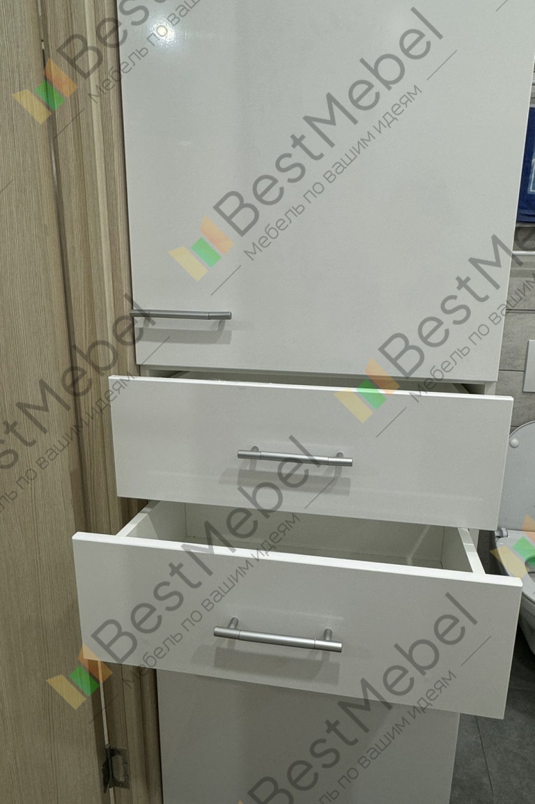 Это мой 3-й. Пенал понравился и важно, что можно изменить размеры, цвет..Команда работает быстро и очень корректно общаются с заказчиком.На всех этапах поддержка работает, чуть ли не круглосуточно. Заказ незначительно был изменён только ширина 50 см. Консультант предложила другие навесы (?) для дверц, объяснив их преимущество.Доставка была тоже быстрой, водитель занёс в квартиру, всё было аккуратно упаковано.Сборка в удобное время на следующий день. Сборшик приятный молодой человек, работал просто красиво, никаких вопросов у меня даже не возникло. Всё снимается на видео. Пенал поставили в туалете место просто для него. Для хранения порошков, гелей и других хозяйственных пренадлежностей места достаточно. Организация на всех этапах отлажена до мелочей.Спасибо всем сотрудникам фирмы BestMebel. Особенно с кем общалась.С уважением Светлана