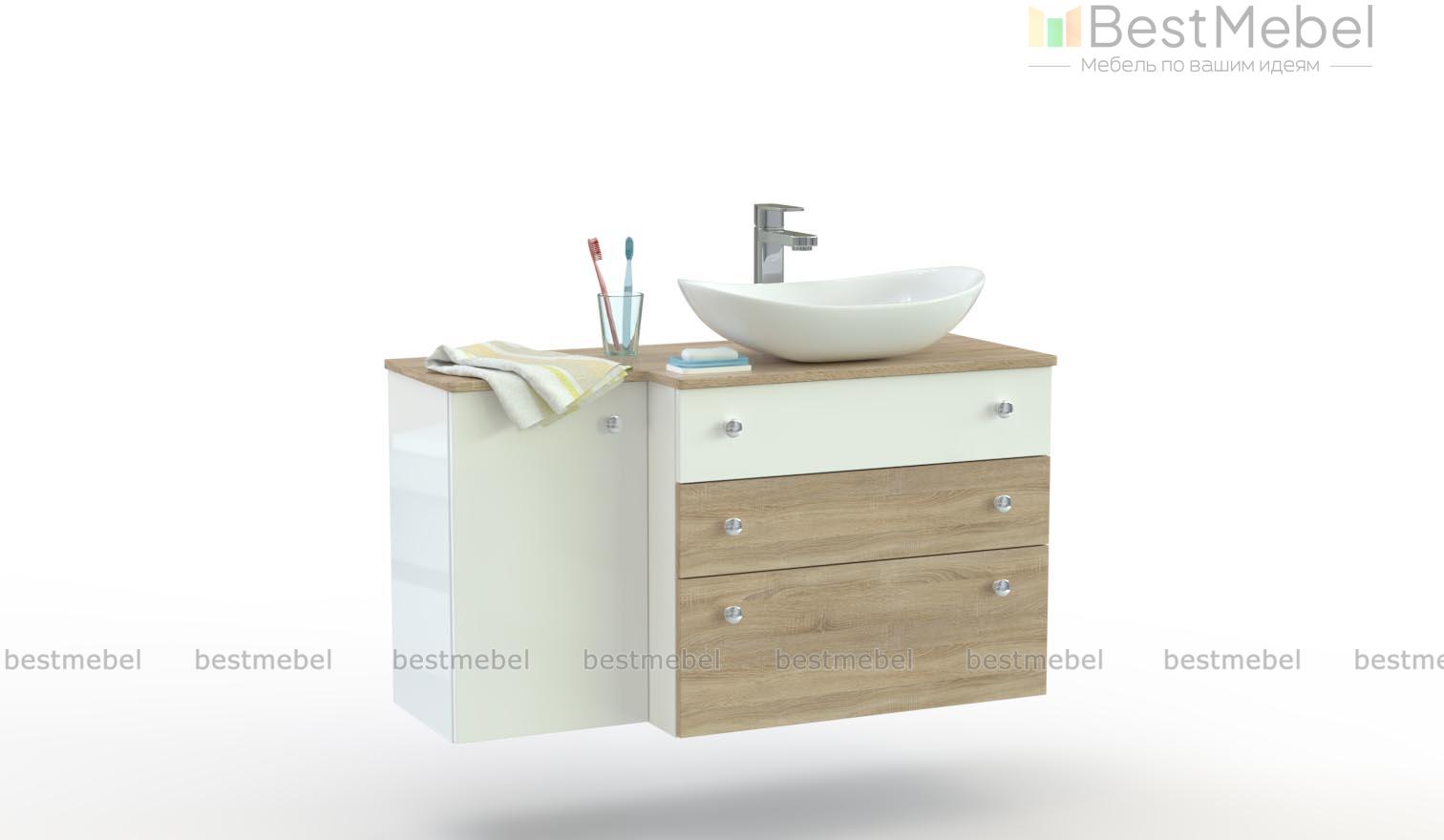 Тумба для ванной Дарти 3 BMS – оригинальная подвесная конструкция для яркого и эргономичного интерьера. Модель с разноуровневым фасадом станет практичным решением для совмещенных санузлов, помогая выгодно использовать пространство. Компактная и вместительная, тумба под раковину оборудована тремя выдвижными ящиками для уходовых средств и распашным отделением. Купить тумбу для ванной Дарти 3 BMS, выполненную в черно-белой гамме, приглашаем в наш интернет-магазин.