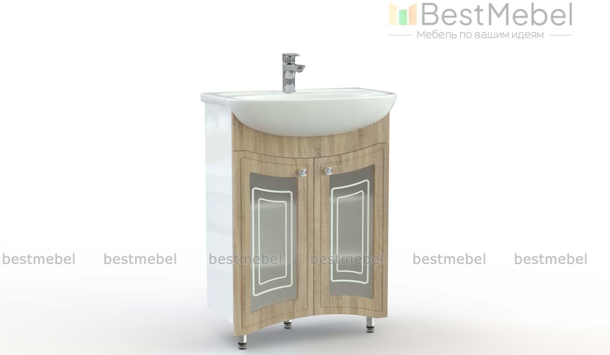 Тумба для ванной Юкато 9 BMS с фигурно вырезанным застекленным фасадом станет настоящим украшением интерьера. Пристенная модель на регулируемых хромированных опорах оборудована местом под раковину и вместительным распашным отделением с полкой для хранения бытовой химии, текстиля и уходовых средств. Выполненная в белом цвете, тумба декорирована фрезеровкой и элегантными стеклянными вставками. Купить тумбу для ванной Юкато 9 BMS приглашаем к нам в интернет-магазин.