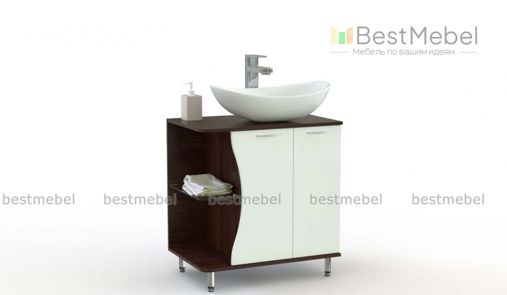 Тумба под раковину Хлоя 7 BMS поможет создать роскошный интерьер, олицетворяющий модные тенденции. Напольная тумба на высоких хромированных ножках предназначена для установки раковины-чаши и оборудована скругленной по углам столешницей, двухдверным распашным отделением с фигурным вырезом и торцевыми открытыми полочками. Коричнево-белая контрастная гамма подчеркнет изящный дизайн модели. Купить тумбу под раковину Хлоя 7 BMS для современной ванной комнаты приглашаем в наш интернет-магазин.