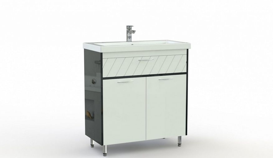 Тумба в ванную Восторг 7 BMS – это широкая пристенная модель для просторных комнат. Выполненная в сочетании черного и белого с хромированной фурнитурой, тумба поможет создать визуально легкий современный интерьер. Широкая модель под раковину дополнена продуманной системой хранения из выдвижного ящика и двухдверного распашного отделения с полкой для удобного размещения гигиенических принадлежностей, аксессуаров или бытовой химии. Купить тумбу в ванную Восторг 7 BMS приглашаем в наш интернет-магазин.