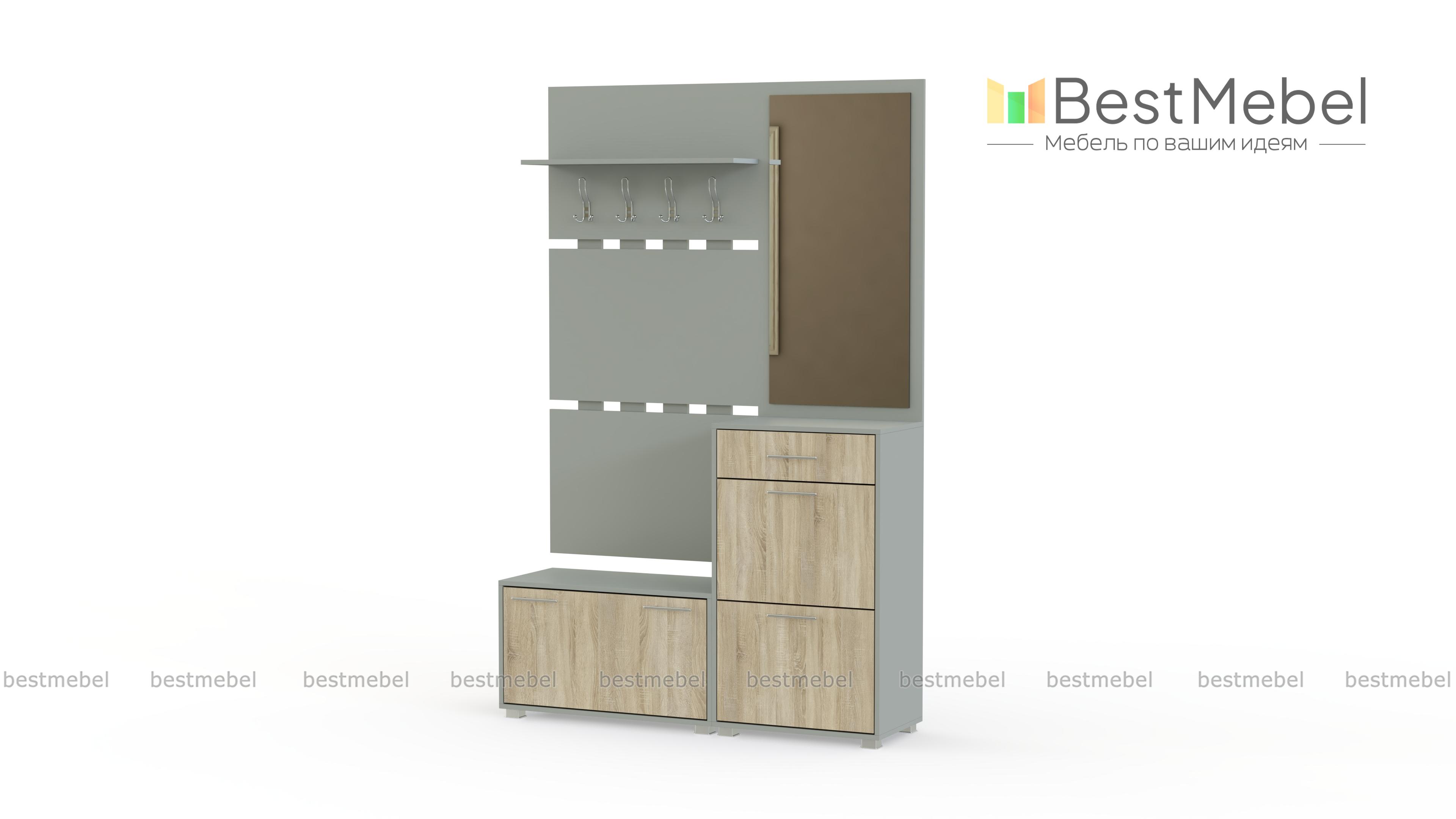 Прихожая Моренго BMS - довольно широкая и вместительная модель для современных интерьеров. С помощью нашей палитры Вы можете заказать изделие не только в однотонном исполнении, но и в комбинированном варианте. Прихожая состоит из основных элементов: 2-х обувных тумб с удобными дверцами, на них имеются специальные кармашки, чтобы хранить обувь аккуратно и все пары были на виду. Кроме них имеется 2 панели: с зеркалом и вешалками, над рядом крючков предусмотрена полка для головных уборов. Купить прихожую Моренго BMS по низкой цене можно на нашем официальном сайте.