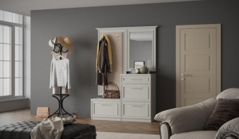 Очаровательная прихожая в классическом стиле Прима 18 BMS станет настоящим украшением домашнего интерьера. Стильный комплект состоит из нескольких независимых модулей, которые вы сможете разместить по своему вкусу – низкой тумбы, высокой с выдвижными ящиками, открытой вешалки и навесного зеркала. Верхняя часть модели декорирована карнизом. Фасады и корпус прихожей выполнены в эффектном светлом цвете, панель вешалки обита искусственной кожей пастельных тонов.