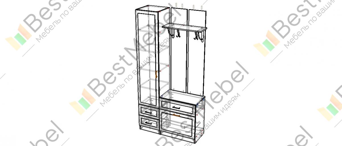 Прихожая Йорк 9 BMS впишется и в классические, и в современные интерьеры благодаря универсальному дизайну, объединившему достоинства обоих стилей. Мини-комплект для небольших квартир и студий включает в себя пенал с выдвижными ящиками в основании, открытую вешалку с полкой под головные уборы и тумбу-обувницу. Продуманная конструкция позволит компактно разместить вещи, а украшением дома станут светлые рамочные фасады с ручками под серебро. Купить прихожую Йорк 9 BMS недорого приглашаем к нам в интернет-магазин.