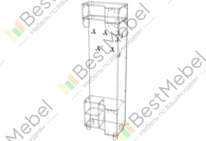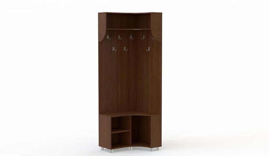 Вешалка угловая Данте 2 BMS с вогнутым радиусным фасадом экономит полезную площадь и будет особенно актуальна в малогабаритных помещениях. Напольная модель оборудована крючками для одежды и аксессуаров, верхней полкой со скругленными боковинами и расположенной в основании открытой тумбой-обувницей. Высокие округлые опоры придают конструкции устойчивость и легкость. Купить вешалку угловую Данте 2 BMS с учетом необходимых размеров вы сможете в нашем интернет-магазине.