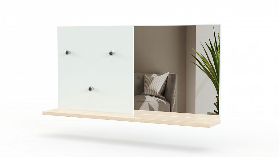 Зеркало настенное с полкой Римини BMS отличается лаконичным дизайном и популярным цветовым решением в сочетании белого и древесных тонов. Оригинальный элемент дизайна современной прихожей, модель представляет собой комбинацию зеркальной поверхности, полочки для мелочей и открытой панели с крючками. Вы сможете сэкономить пространство и нестандартно оформить размещение аксессуаров, украшений и ключей в зоне быстрого доступа. Купить зеркало настенное с полкой Римини BMS приглашаем в наш интернет-магазин по доступной цене.