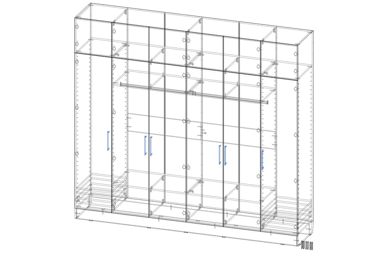 Шкаф распашной Остин Лео 11 BMS - для организации хранения в спальне или просторной прихожей. Шестидверная конструкция объединила два модуля со штангами и две бельевые секции, а также позволяющие убрать сезонные и габаритные вещи антресоли. В дизайне шкафа минималистичные формы сочетаются с нейтральными оттенками и удобной фурнитурой в качестве стильного акцента. В шкафу перфорация шаг 5 см и выпил под плинтус скошенный 12*3.