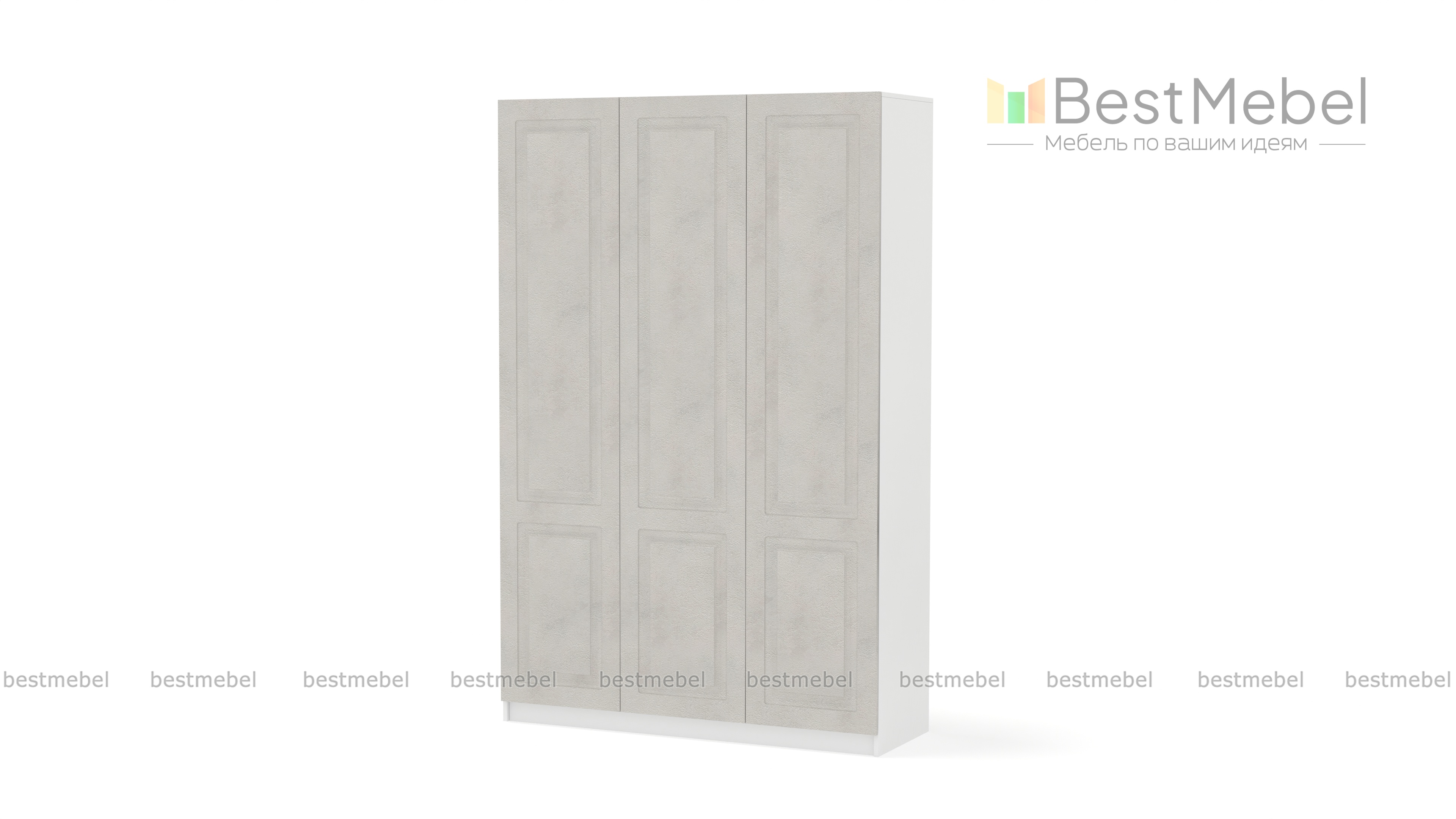 Шкаф распашной Руан 3 BMS - это современная классика для вашей спальни или прихожей. Нейтрального оттенка фасад оформлен широкими фрезерованными рамками, удачно дополняя разные по стилю интерьерыс Г-образным выпилом под плинтус 9x3. В этом компактном трехдверном шкафу достаточно места для одежды на вешалках, а ряд бельевых полок слева и верхняя полка позволяют разместить вещи в сложенном виде. Купить шкаф распашной Руан 3 BMS с изготовлением по индивидуальным размерам вы сможете в нашем интернет-магазине.