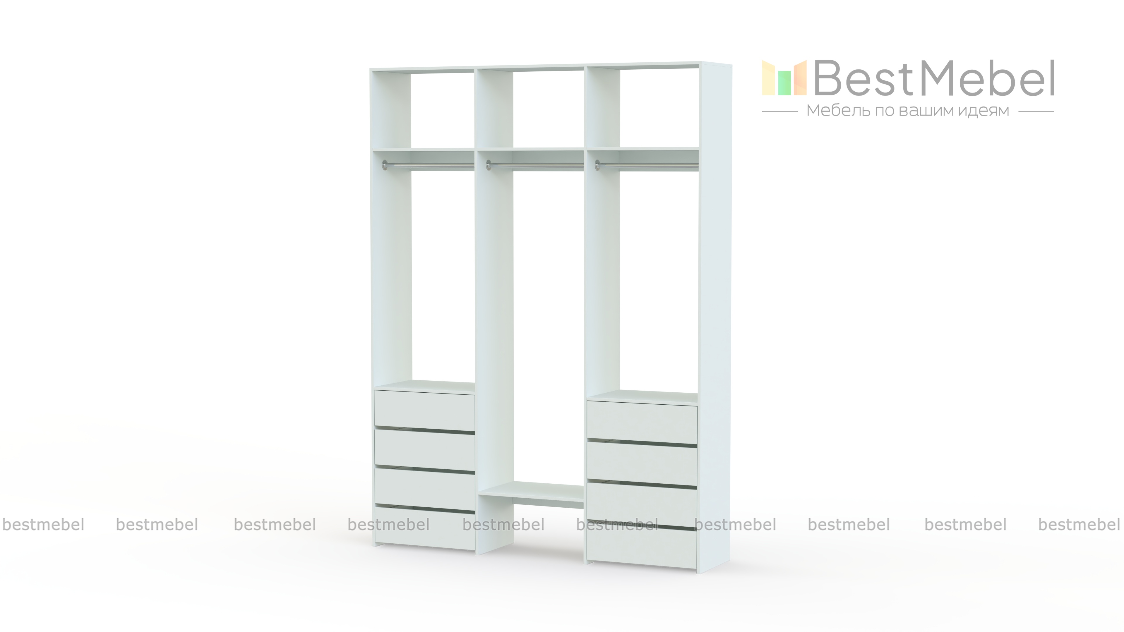 Стеллаж для одежды Мирта 9 BMS поможет вам хранить в порядке одежду, коробки с обувью и всевозможные аксессуары. Система хранения стеллажа включает в себя три вместительные полки сверху, три платяные штанги и восемь выдвижных ящиков, расположенных в два ряда. Прочная конструкция из ламинированной плиты прослужит долго, сохраняя эстетичный внешний вид. Направляющие шариковые с доводчиком.