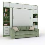 Шкаф-кровать с диваном Изабель-6 BMS привлекает ярким и функциональным современным дизайном. Практичная модель в сочетании древесного и белого гармонично дополнит интерьер небольшой городской квартиры. Высокий шкаф с антресолью удобен для хранения разнообразных бытовых вещей, а с комфортом отдохнуть поможет уютный диванчик без подлокотников. В центре располагается откидная кровать с вертикальным подъемом, которая легко раскладывается при помощи надежного механизма. Купить шкаф-кровать с диваном Изабель-6 BMS приглашаем выгодно в наш интернет-магазин.