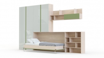 Шкаф-кровать трансформер Фазан 56 BMS олицетворяет современный подход к организации пространства и оптимален для малогабаритных городских квартир. Композиция 3 в 1 станет отличным выбором для комнаты подростка, объединив систему хранения, рабочую зону и спальное место. Горизонтальный модуль-трансформер с широкой столешницей в разложенном виде представляет собой комфортную кровать с полкой для мелочей в основании. Стильную геометрию линий подчеркнет сочетание нейтральных оттенков и оливкового глянца. Купить шкаф-кровать трансформер Фазан 56 BMS приглашаем на сайт нашего интернет-магазина.