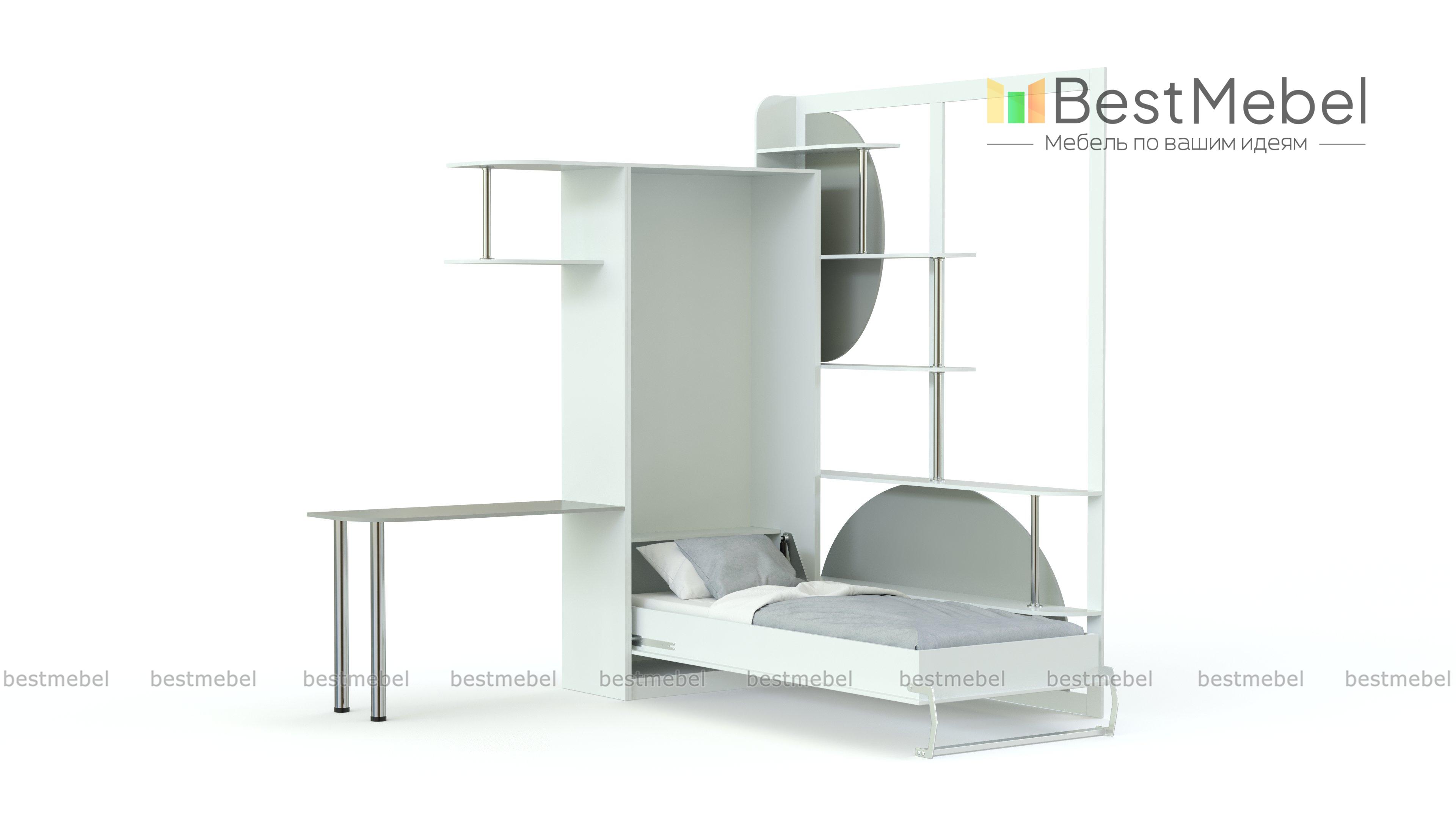 Шкаф-кровать трансформер Оранжерея BMS сочетает практичность конструкции и яркий современный дизайн. Прекрасный выбор для малогабаритной детской комнаты, модель позволит создать комфортный для учебы и отдыха интерьер, экономно используя пространство. Визуально легкая композиция включает в себя замаскированную под шкаф откидную кровать, открытые полки на хромированных опорах и письменный стол с надстройкой. Купить шкаф-кровать трансформер Оранжерея BMS вы сможете в нашем интернет-магазине по отличной цене.