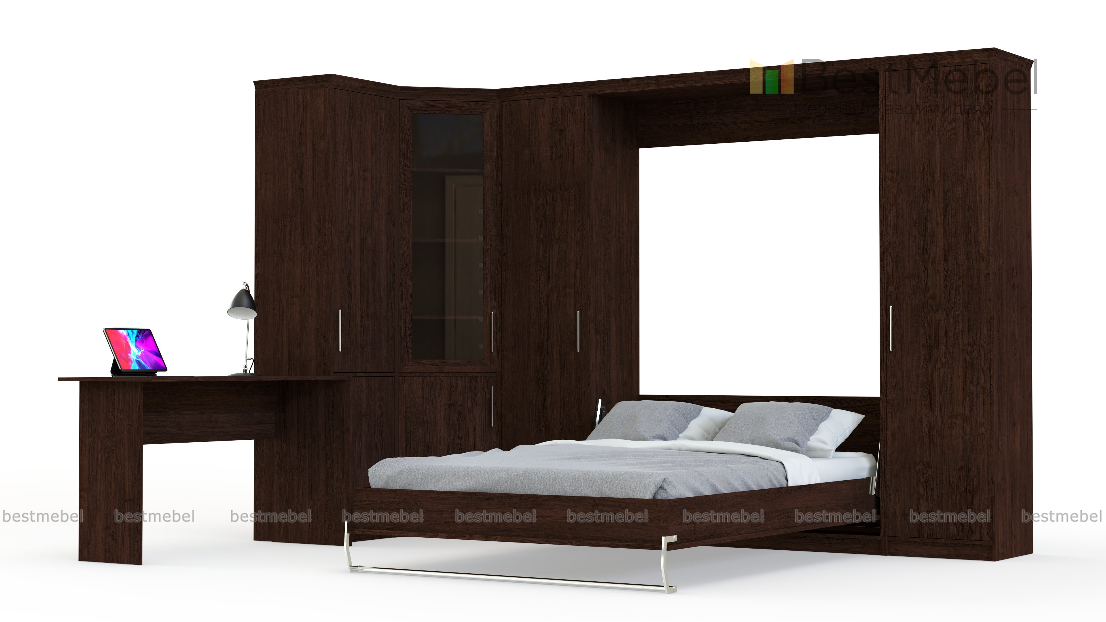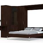 Шкаф-кровать трансформер Рекс BMS станет практичным решением для гостиной, молодежной комнаты или студии. Модель, выполненная в темных древесных тонах, отличается строгим современным дизайном и объединяет удобную систему хранения и спальное место. Откидная двуспальная кровать, скрытая за имитацией дверей, в сложенном виде практически не занимает места, а при необходимости быстро раскладывается. Нишу с кроватью дополняет встроенная подсветка. Купить шкаф-кровать трансформер Рекс BMS и рационально организовать пространство вам поможет наш интернет-магазин.