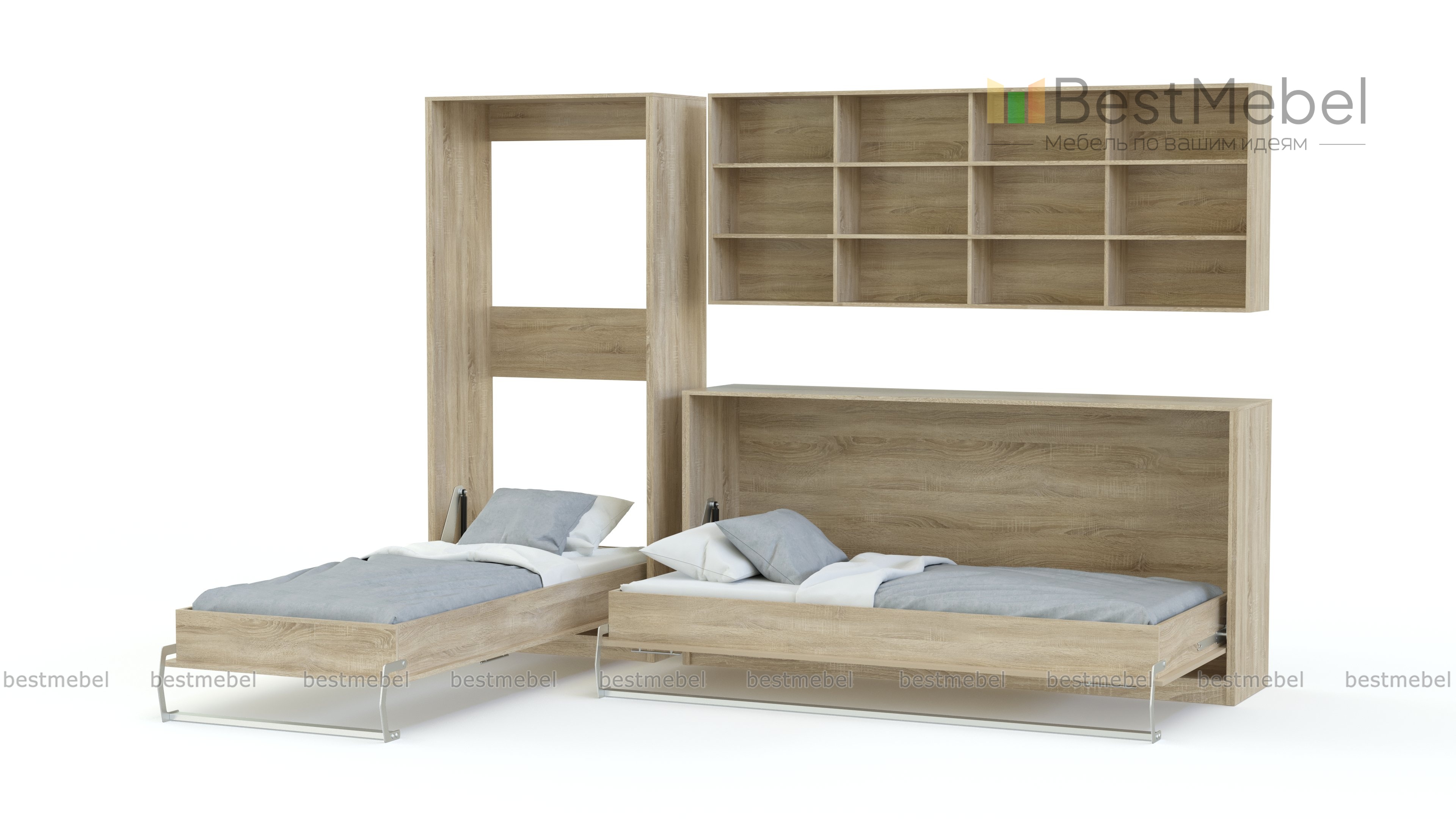 Шкаф-кровать трансформер Сахара BMS поможет рационально организовать пространство, освободив центральную часть небольшой комнаты для игр. Практичная композиция включает в себя шкаф с вертикальным модулем-трансформером, откидную кровать с боковым подъемом и вместительный навесной стеллаж для книг и декоративных мелочей. Минималистичный дизайн и исполнение в светлых песочных тонах универсальны для современных интерьеров. Купить шкаф-кровать трансформер Сахара BMS приглашаем в наш интернет-магазин.