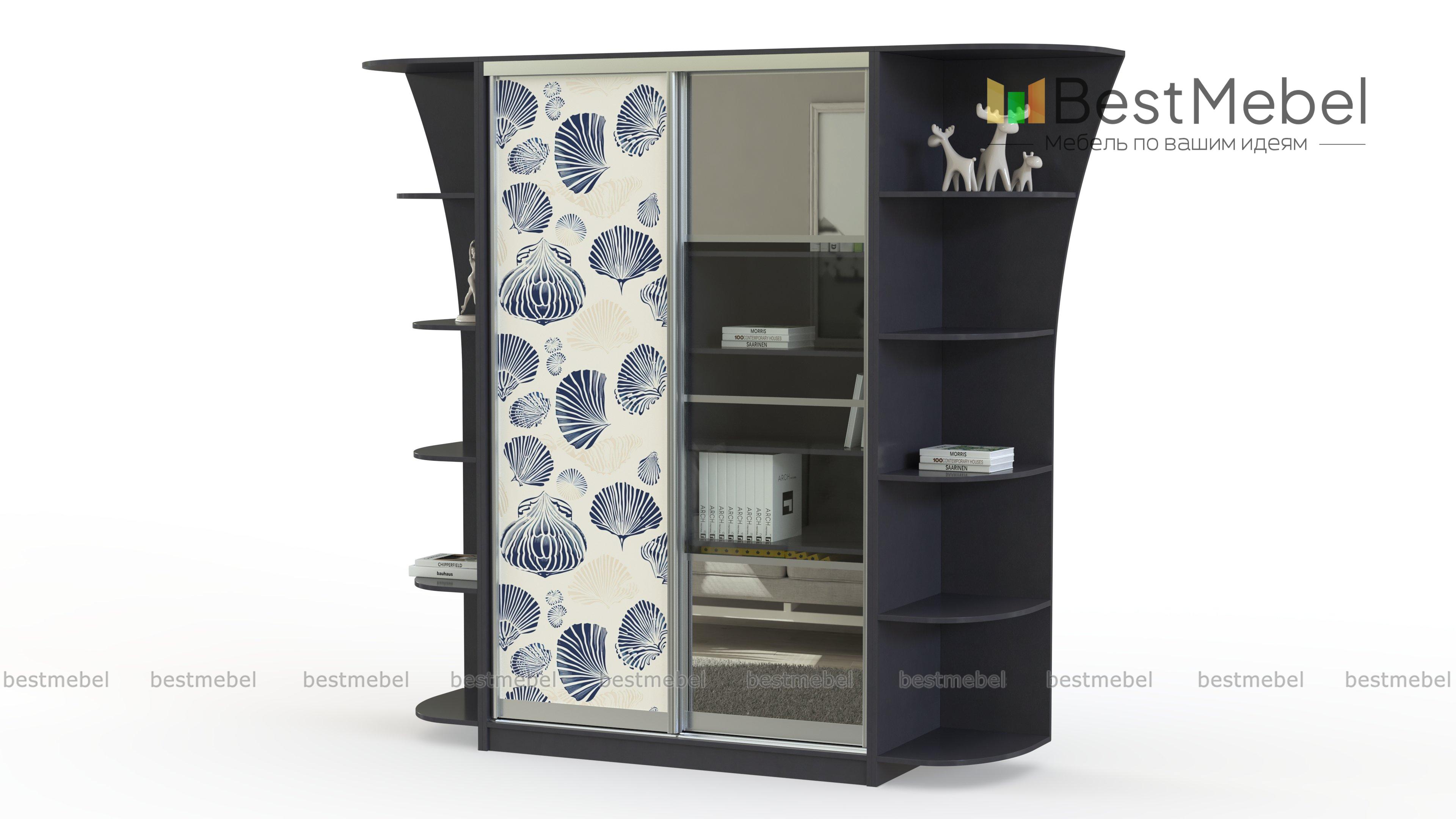 Шкаф-купе Диона 8 BMS с сужающимися книзу боковинами выполнен в форме тюльпана. Модель в нейтральных тонах с «морским» рисунком и зеркалами создает ощущение легкости и гармонично вписывается в интерьер современной квартиры. К плюсам шкафа относится и наличие отделений для вешалок с одеждой, книжных полок и элегантных угловых стеллажей. Купить шкаф-купе Диона 8 BMS вы сможете в нашем интернет-магазине, подобрав размеры и наиболее подходящее цветовое решение.