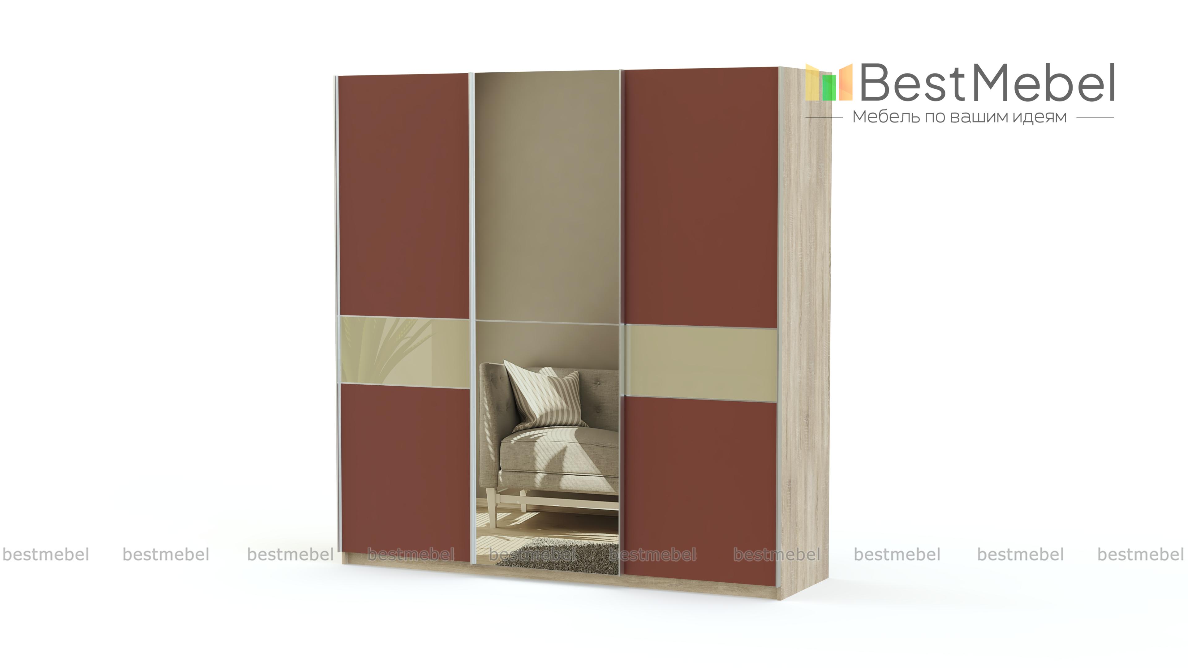 Вместительный трехстворчатый шкаф-купе Элит 53 BMS смотрится легким за счет светлых, с яркой вставкой фасадов и подвесной системы дверей. Зеркальная дверь не только удобна, но придаст помещению объема. Просторные платяное и бельевое отделения, оборудованные штангой и полками, максимально удобны для размещения большого количества вещей. Цветное стекло фасадов практично и устойчиво к повреждениям. В нашем интернет-магазине вы сможете подобрать для шкафа оптимальные параметры.