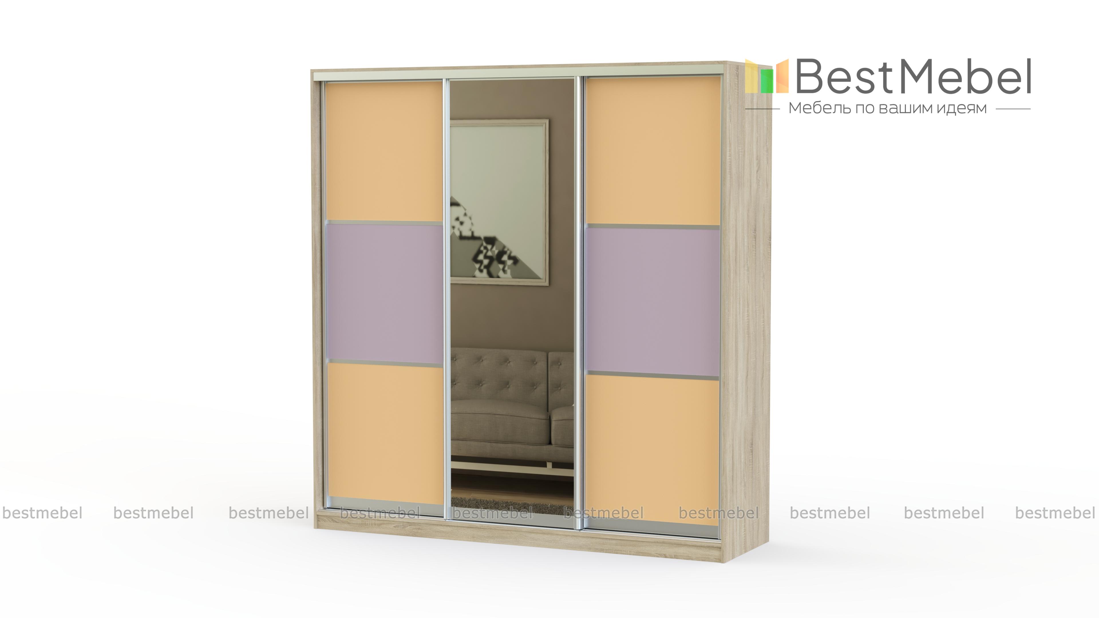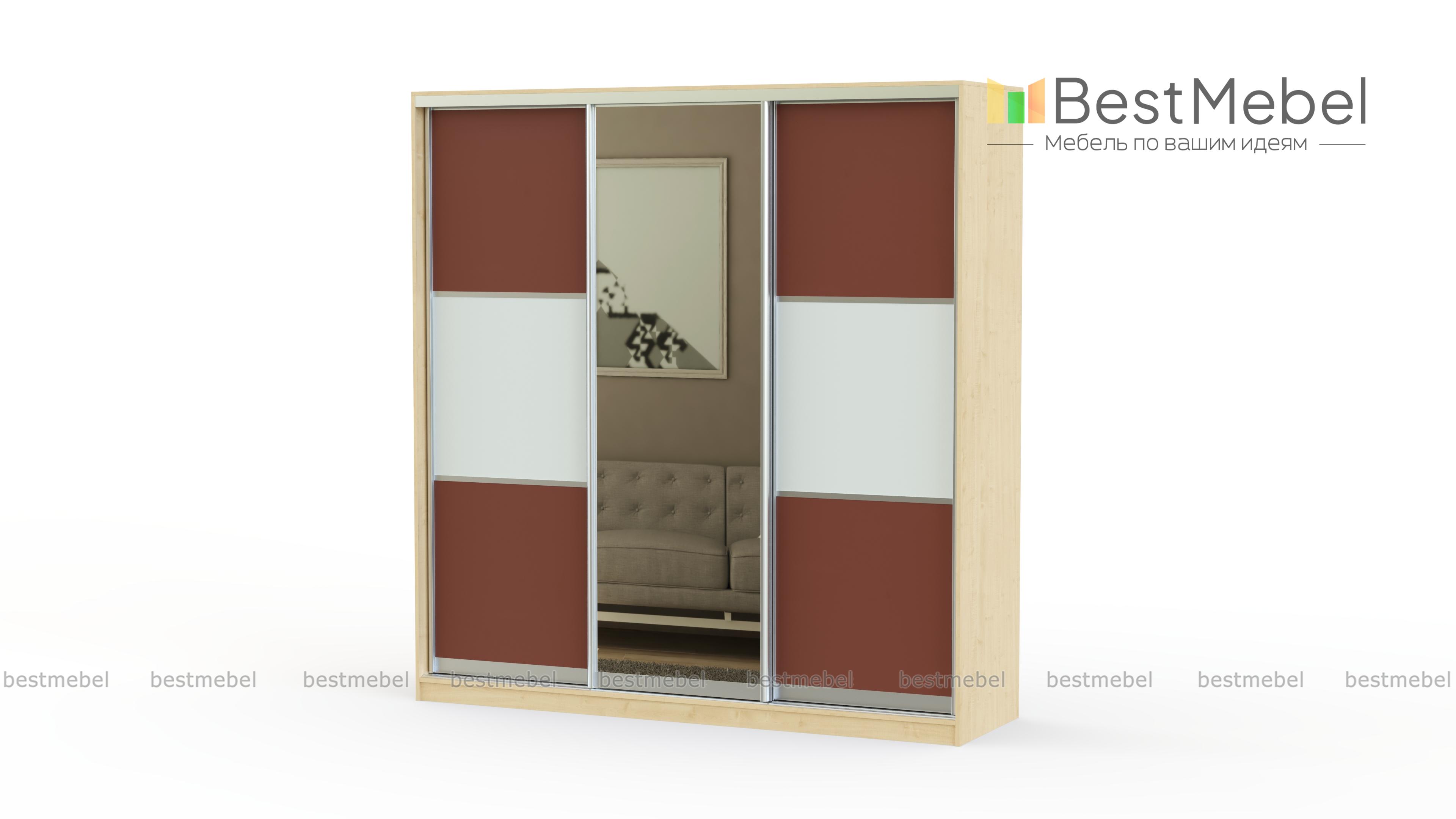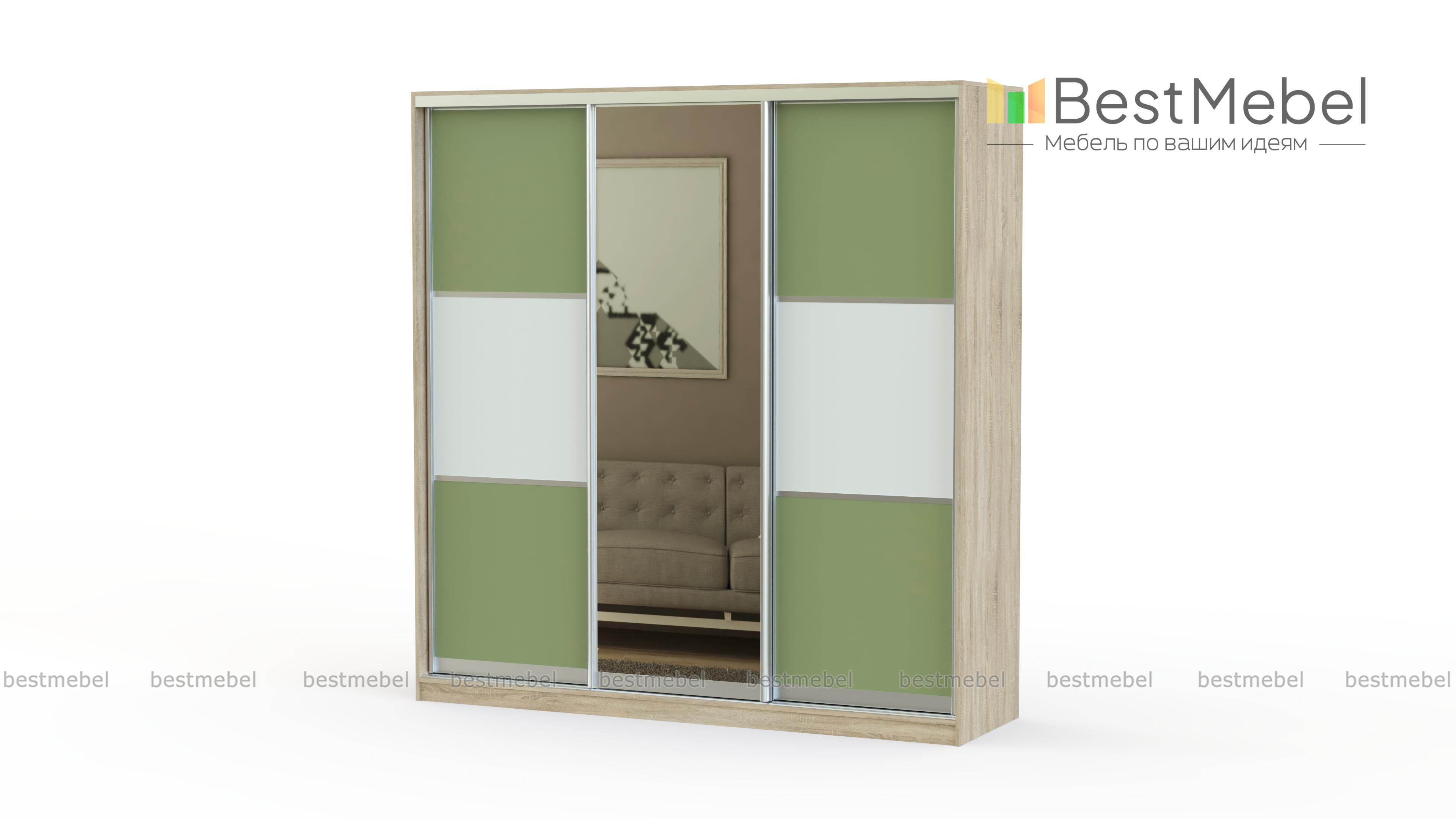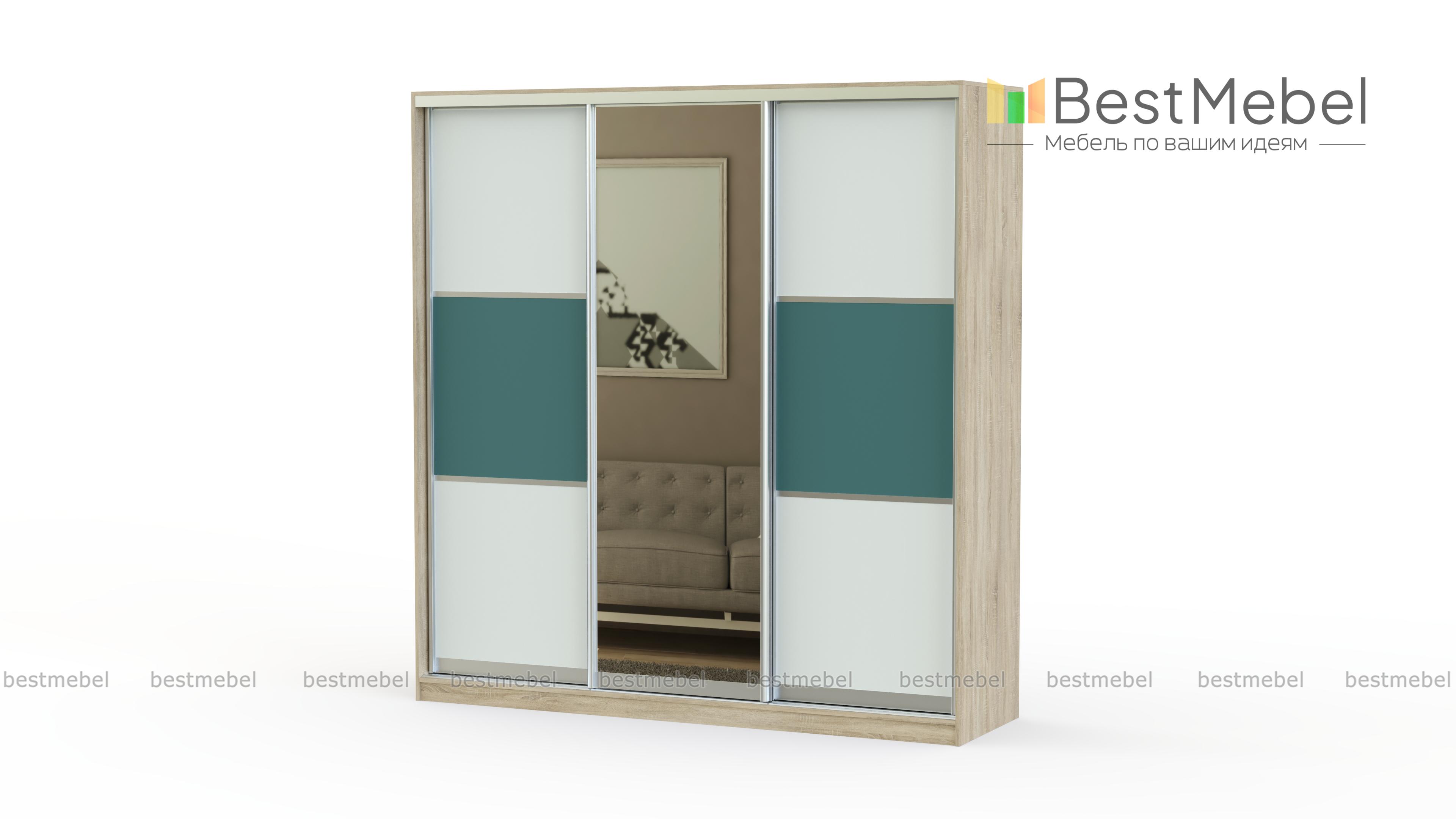 Просторный и вместительный шкаф-купе, имеющий классический дизайн. Трехдверный фасад украшен зеркалом, сочетает в себе холодные контрастные цвета. Такая корпусная мебель легко впишется в интерьер спальни, гостиной или прихожей.