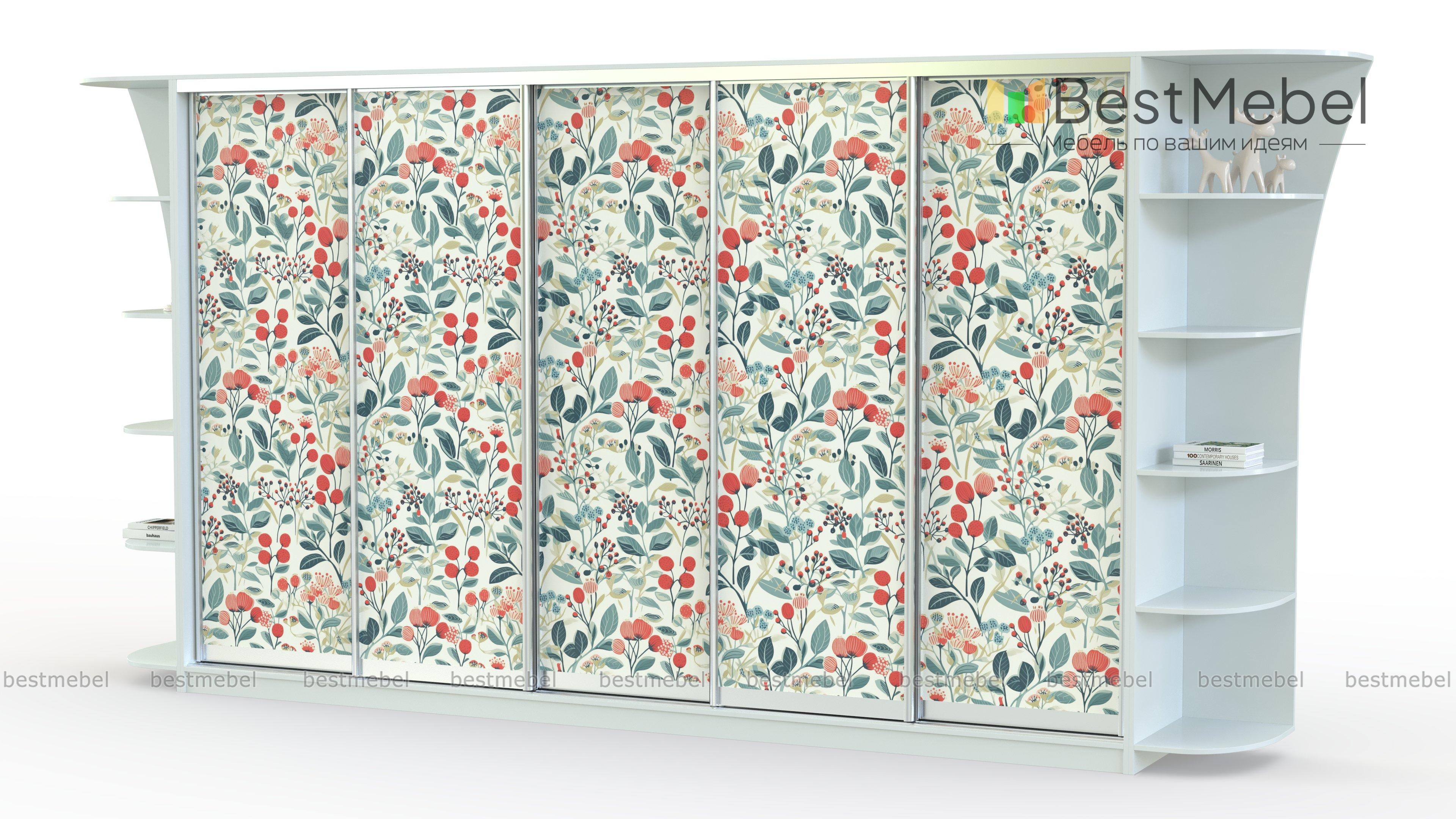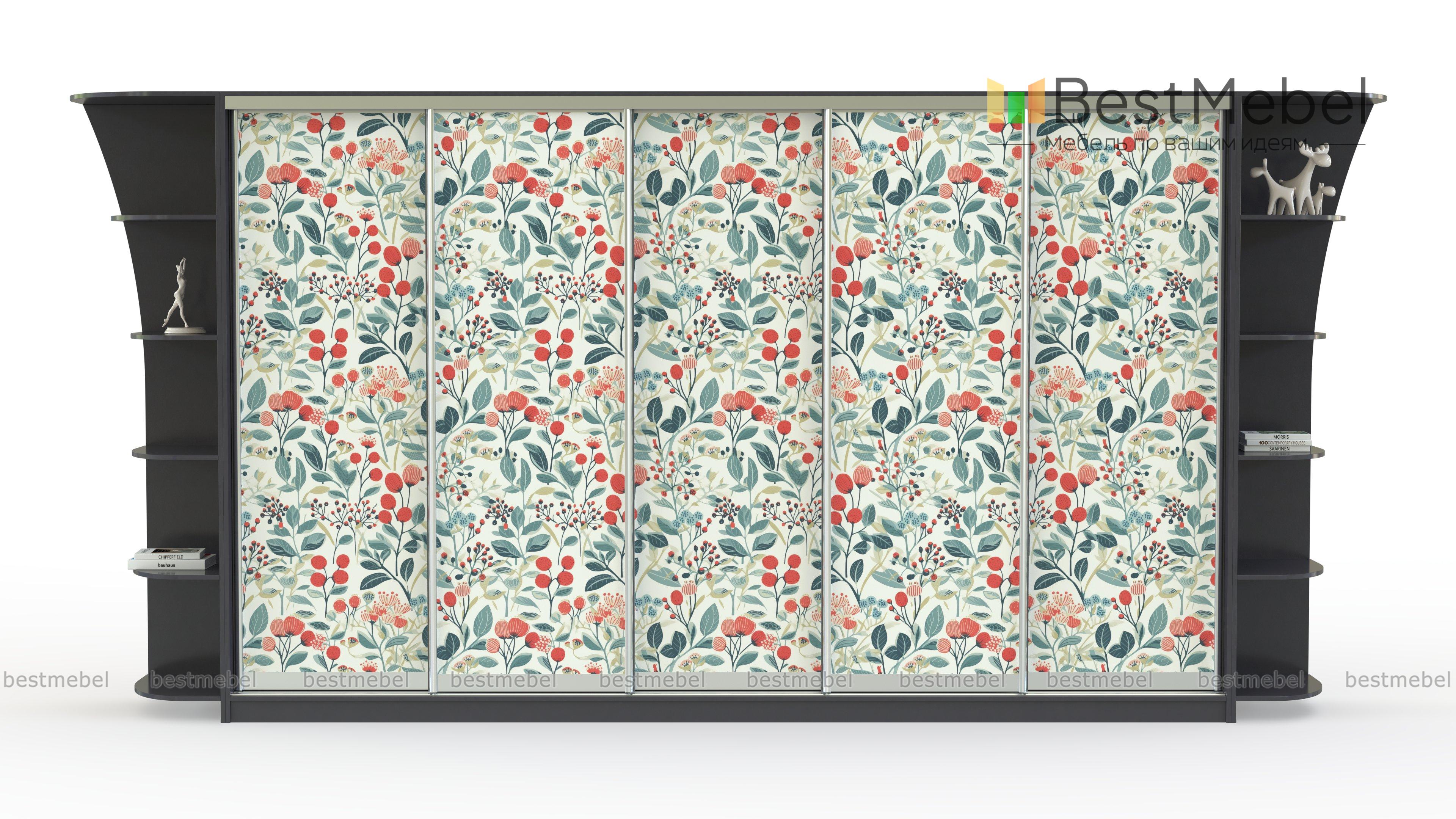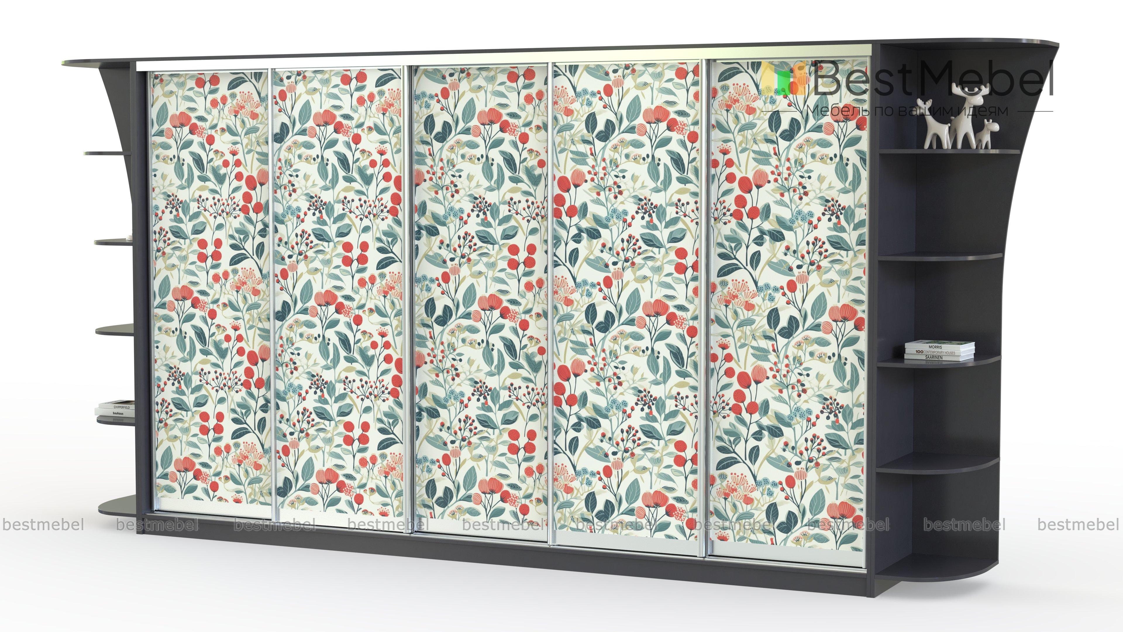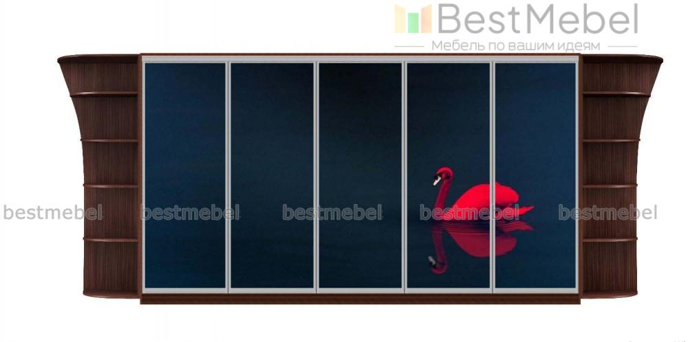Шкаф-купе Лебедь 336 BMS украшен акцентным принтом, а сужающиеся книзу стеллажи создают эффектный силуэт. Основное пятидверное отделение и дополнительные торцевые модули позволяют хранить одежду и обувь, размещать по своему вкусу важные мелочи и декор. Использование качественного современного материала – ламинированной плиты и надежной фурнитуры продлевает срок службы шкафа и делает пользование удобным. Купить шкаф-купе Лебедь 336 BMS, изготовленный по вашим размерам, приглашаем к нам в интернет-магазин.