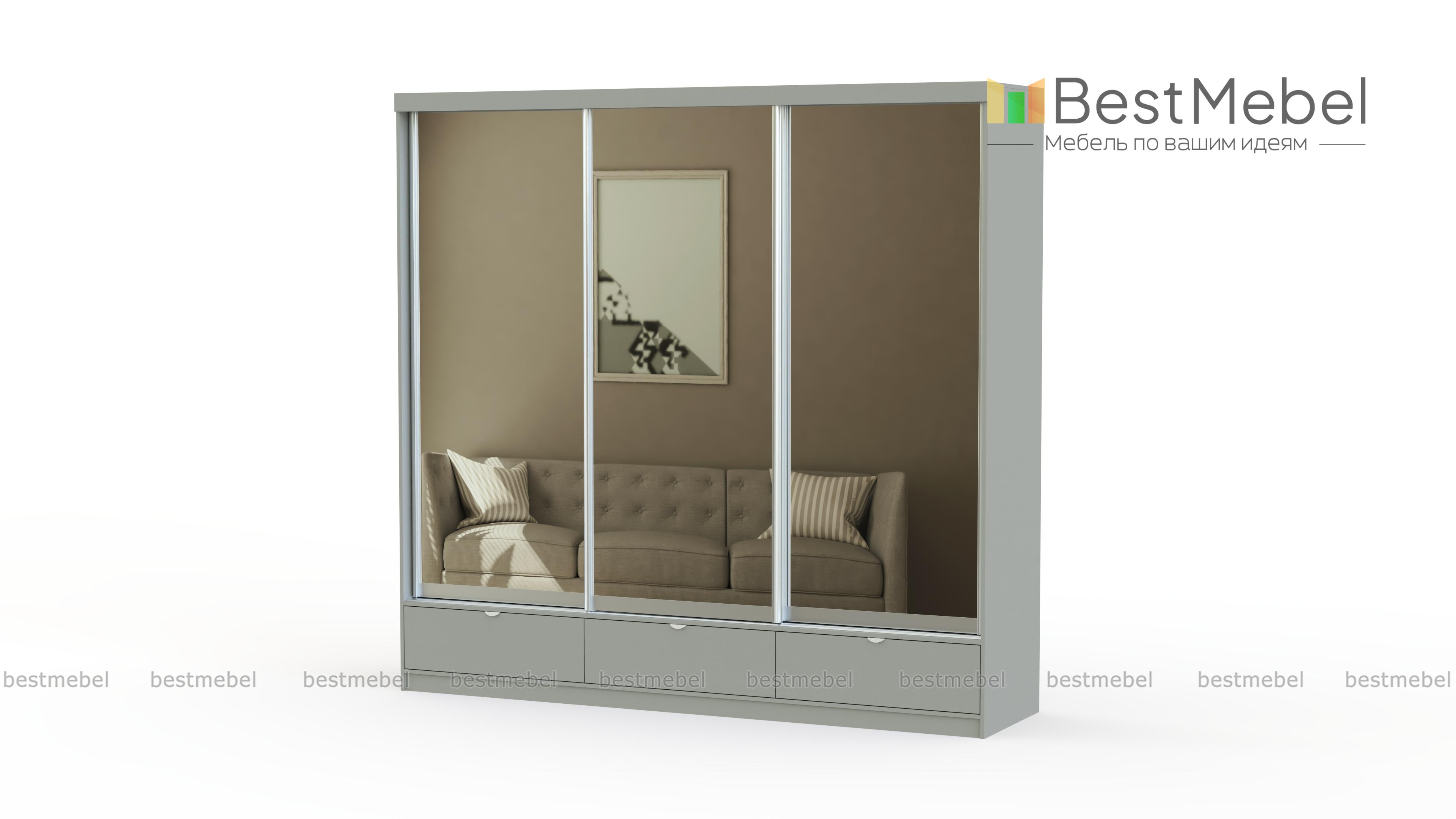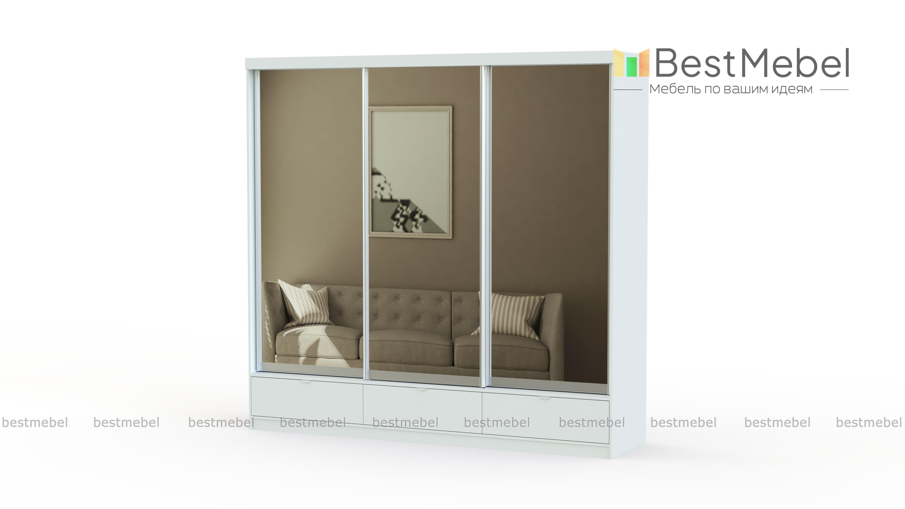 Просторный и вместительный шкаф-купе с зеркальным фасадом. Такая корпусная мебель гармонично вольется в любой интерьер, зрительно увеличив пространство. А если разместить шкаф напротив окна, то комната будет просто залита солнечным светом.