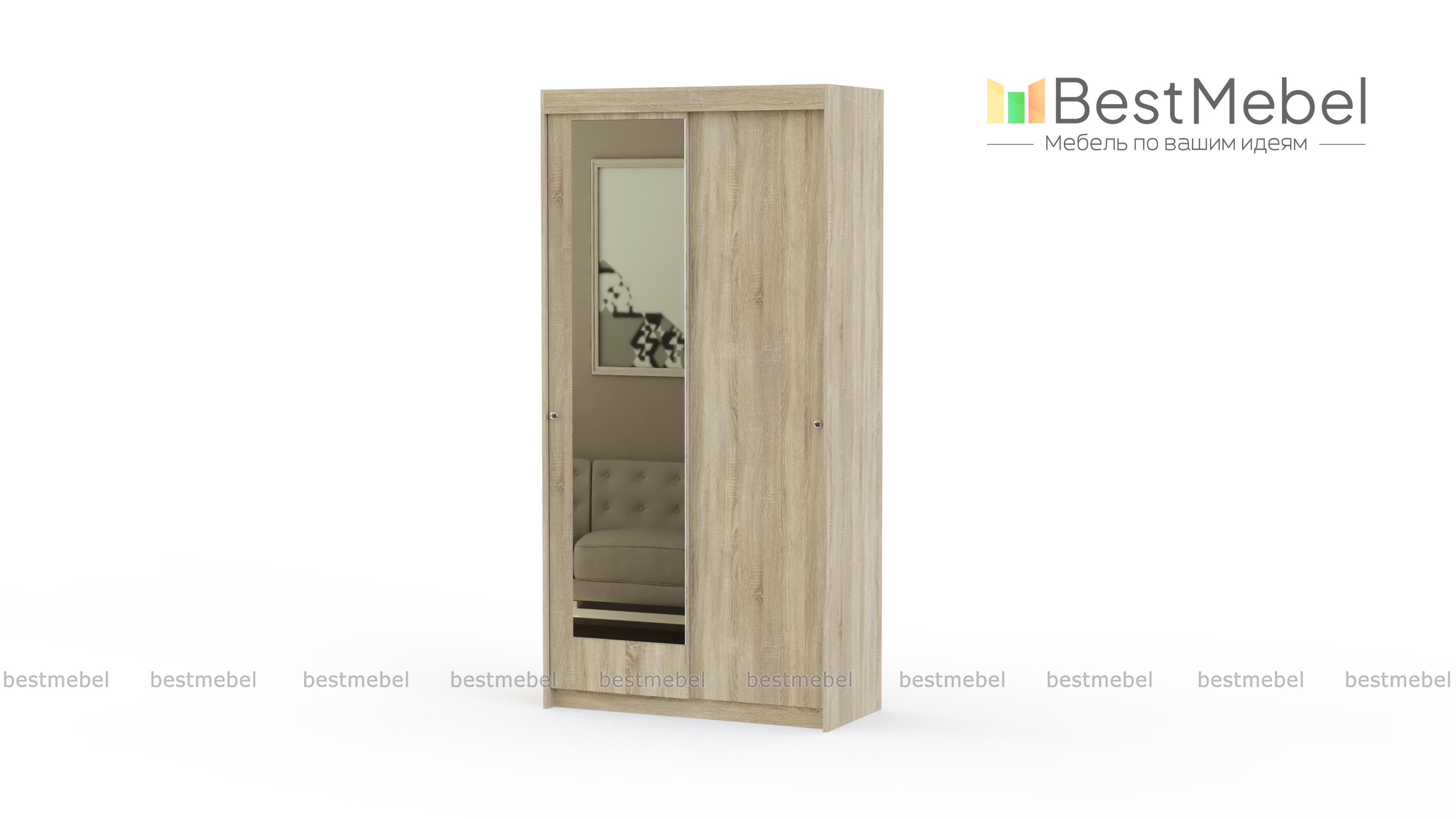Шкаф-купе Мираж 5 BMS – актуальная модель в современном стиле. Внутреннее наполнение состоит из штанги и антресольной полки. Штанга расположена достаточно высоко и позволяет повесить длинное пальто, костюм или платье. Вы можете скорректировать наполнение изделия, если в этом есть необходимость. Также по Вашему желанию можно дополнить зеркалом второй фасад или убрать их совсем. Современная система направляющих обеспечит долгую и удобную эксплуатацию. Цветовое решение придаст Вашему дому тепло и уют. Купить по низкой цене шкаф-купе Мираж 5 BMS можно в несколько кликов на нашем портале.