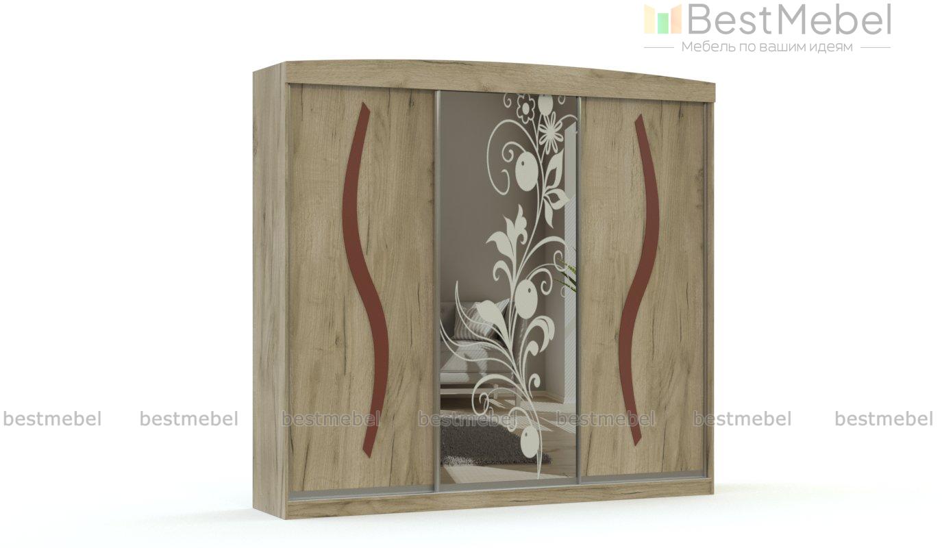 Шкаф-купе СП-505 BMS с изящным декором фасада станет украшением спального интерьера. Трехдверная модель выполнена в насыщенных древесных тонах из ламинированной плиты высокого качества, центральная зеркальная створка декорирована фантазийным рисунком. Просторные внутренние отделения обеспечат бережное хранение одежде и постельным принадлежностям, а раздвижные дверцы сэкономят пространство комнаты. Купить шкаф-купе СП-505 BMS вы сможете в нашем интернет-магазине, по желанию изменив цвет и размеры.