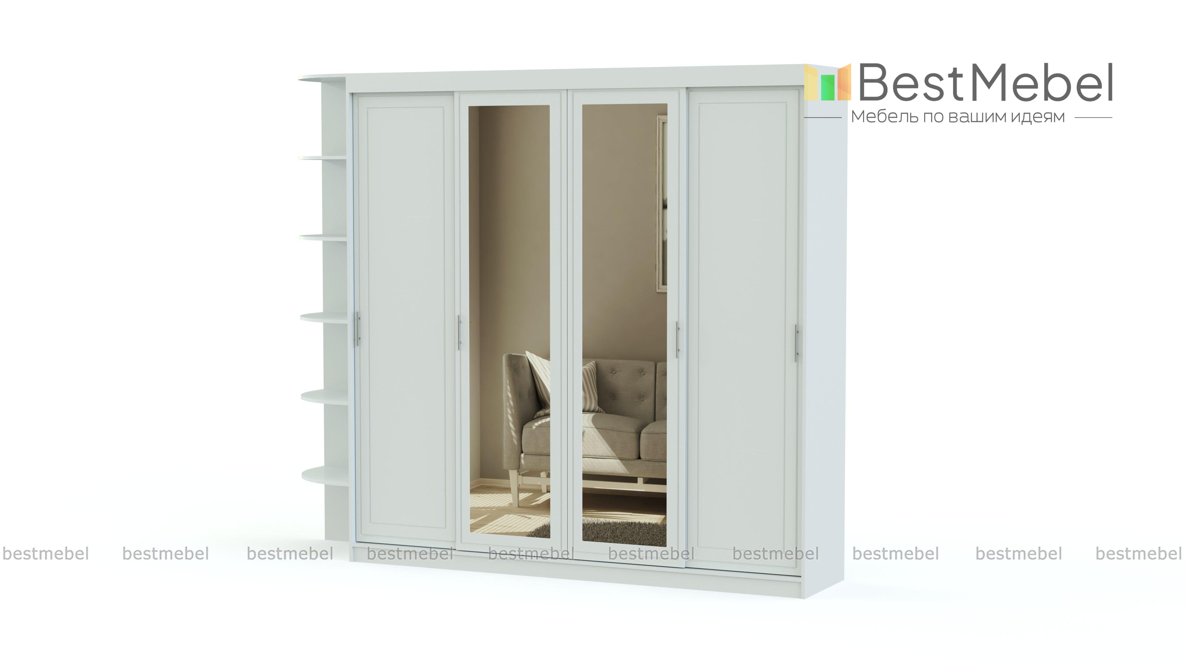 Шкаф-купе Стелла 2 BMS – это элегантная современная классика, уместная в любом из помещений дома. Четырехдверный шкаф с белоснежными рамочными фасадами и просторным внутренним отделением поможет организовать удобное хранение предметов гардероба и домашнего текстиля, а для книг, аксессуаров и декоративных мелочей предусмотрен торцевой стеллаж. Зеркальные дверцы сделают комфортными примерку и уход за собой. Купить шкаф-купе Стелла 2 BMS приглашаем в наш интернет-магазин по отличной цене.