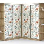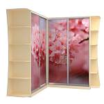 Шкаф-купе Виля BMS поможет вам задействовать угловое пространство и выгодно использовать особенности планировки. Внешне компактный и визуально легкий, крупногабаритный шкаф объединил два гардеробных отделения-купе и два радиусных стеллажа с эффектными вырезами. Выполненная в универсальном светлом оттенке из ламинированной плиты, модель украшена трендовым цветочным принтом. Купить шкаф-купе, изготовленный по вашим размерам, приглашаем в наш интернет-магазин.