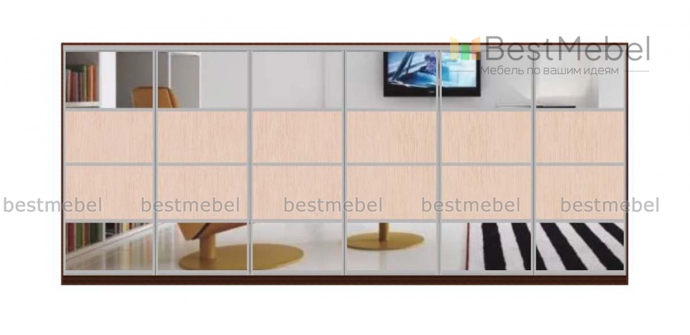 Шкаф-купе Зеро 11 BMS поможет вам создать визуально легкий, минималистичный интерьер. Шестидверная модель станет прекрасным выбором для просторных помещений, помогая компактно разместить большое количество вещей и не перегружая комнату лишней мебелью. Эффектный фасад шкафа выполнен в сочетании поверхностей светлых древесных тонов, зеркал и серебристого профиля. Купить шкаф-купе Зеро 11 BMS приглашаем в наш интернет-магазин, подобрав необходимые параметры.