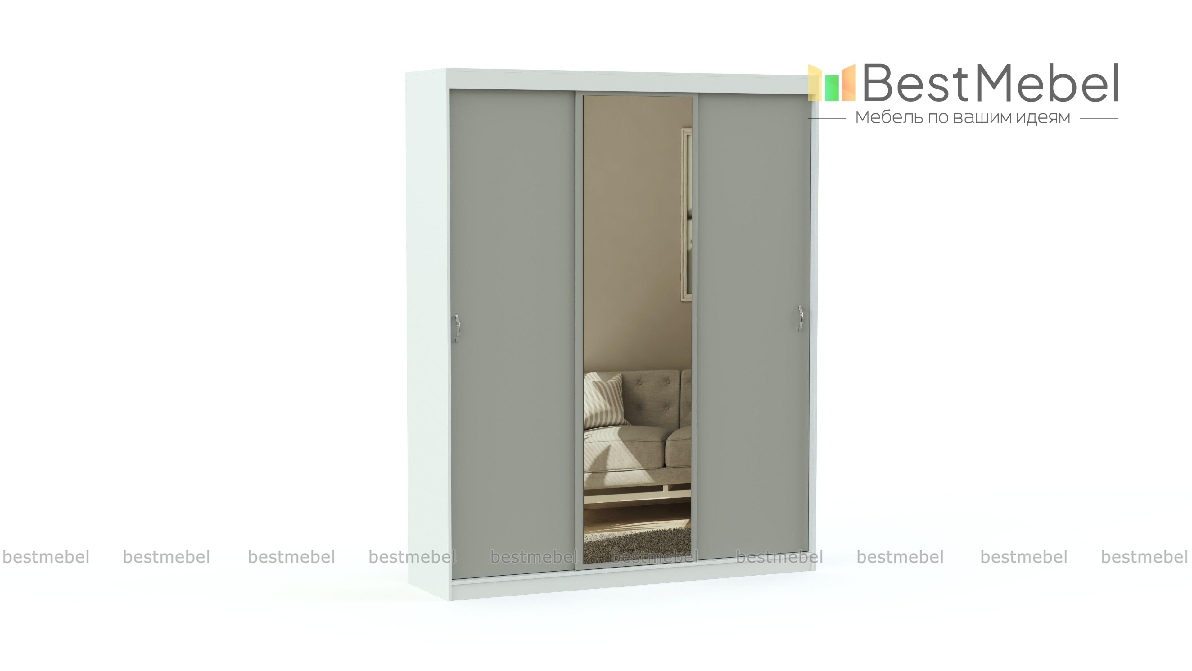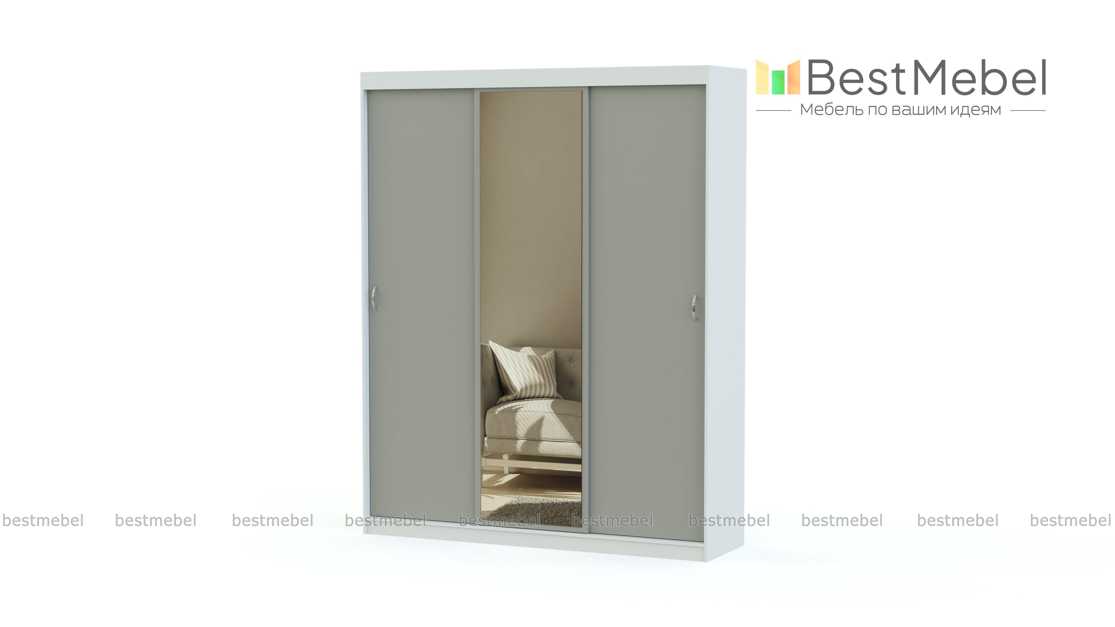 Шкаф-купе Премьера 1 BMS обладает солидными габаритами и хорошей вместительностью. Если Вам не хватает места для хранения одежды и Вам куда-то нужно спрятать пылесос, гладильную доску, утюг, то никак не обойтись без этого трёхдверного изделия, компоновка которого вместит даже крупногабаритную атрибутику. Шкаф-купе дополнен зеркальной вставкой. Она визуально увеличивает площадь помещения. Под свой интерьер, подбирайте необходимое цветовое решение, проверяйте габариты и мы обрадуем Вас быстрым изготовлением изделия. Купить шкаф-купе Премьера 1 BMS можете в нашем магазине по низкой цене.