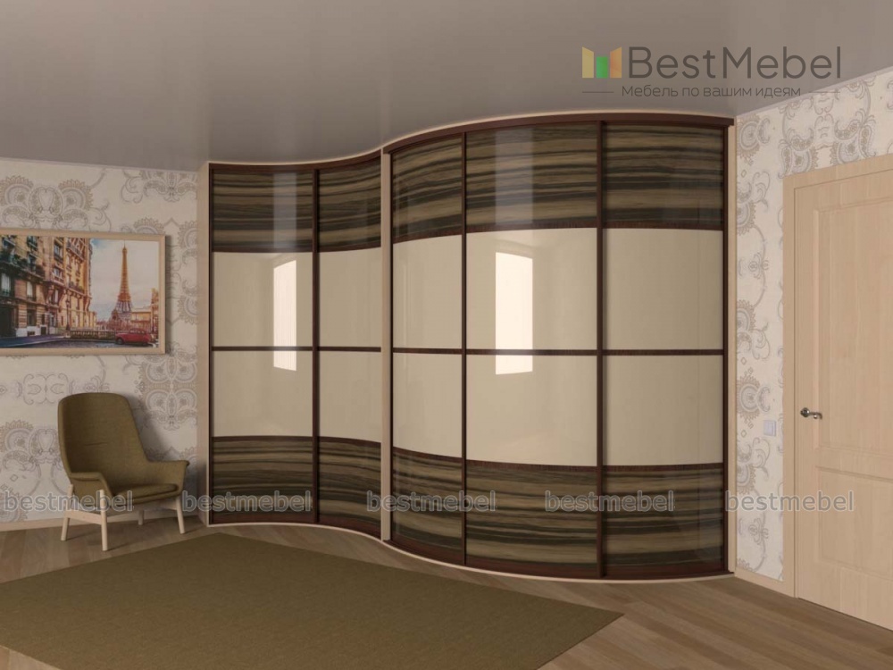 Шкаф-купе радиусный Лота 7 BMS – это крупногабаритная угловая модель для просторных помещений. Особенность конструкции шкафа – волнообразный фасад в эффектном сочетании ванильного и темного глянца с рисунком зебрано. Пятидверная композиция, объединившая раздвижные отделения с вогнутым и выпуклым фасадами, сможет компактно разместить большое количество вещей и сэкономить полезную площадь. Купить Шкаф-купе радиусный Лота 7 BMS с учетом необходимых параметров приглашаем в наш интернет-магазин.