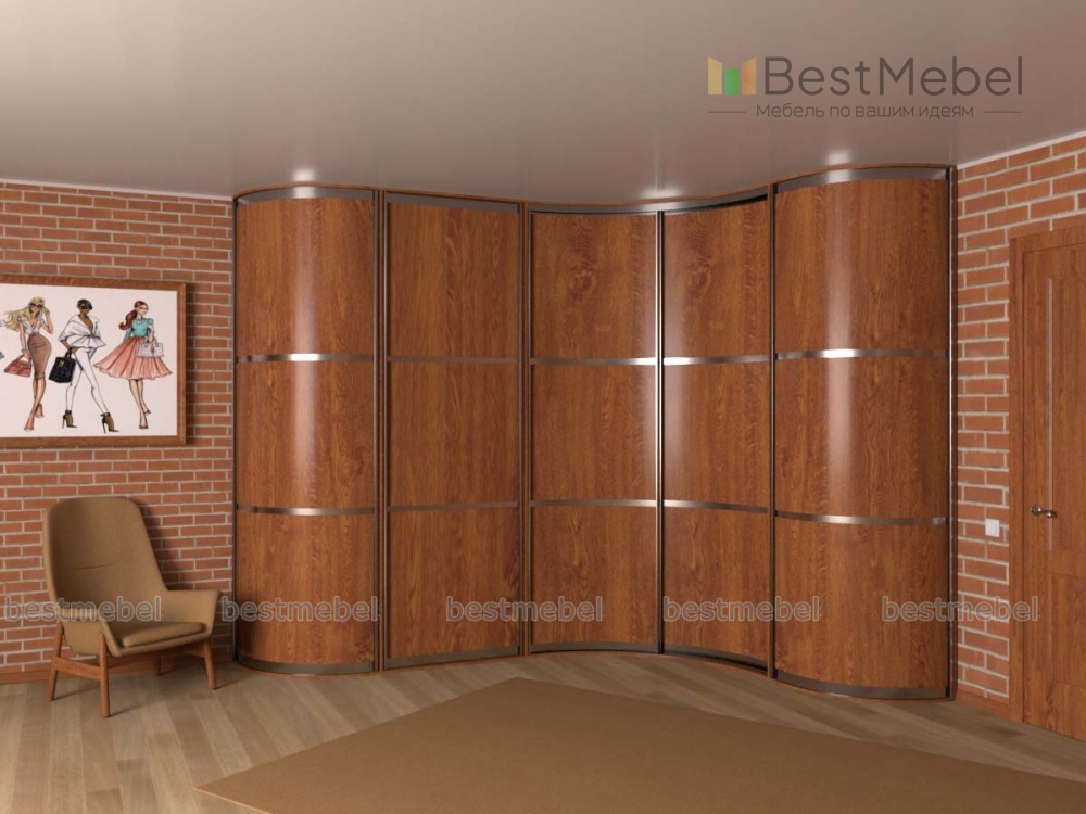 Шкаф-купе радиусный Терция 36 BMS гармонично объединил классические традиции в оформлении и современную функциональность. Крупногабаритная система хранения, предназначенная для просторных помещений, выполнена в теплых оттенках под массив дерева и профиле оттенка серебро. Обтекаемую, лишенную острых углов форму создает сочетание вогнутых и выпуклых отделений. Шкаф позволит разместить большое количество вещей и разгрузить другие помещения дома от лишней мебели. Купить Шкаф-купе радиусный Терция 36 BMS вы сможете в нашем интернет-магазине по отличной цене.