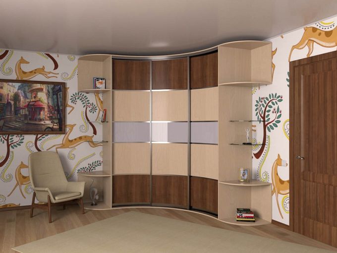 Шкаф радиусный Дора 9 BMS представляет собой многофункциональную конструкцию для интерьера современной спальни или гостиной. Угловая трехдверная модель отличается вместительным внутренним отделением и дополнена оригинальными торцевыми полками, на которых смогут расположиться книги, важные мелочи, предметы декора. В эффектный элемент дизайна шкаф превращает вогнутый фасад, выполненный в сочетании древесных тонов с глянцевыми бежевыми вставками. Купить Шкаф радиусный Дора 9 BMS вы всегда сможете в нашем интернет-магазине.