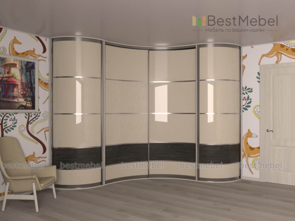Шкаф радиусный Молли 6 BMS – это комбинированная модель с фасадами волнообразной формы, объединившая одно раздвижное и два распашных отделения. Эффектный и практичный, угловой шкаф выгодно отличается вместительностью и безопасностью благодаря отсутствию острых углов. Гармоничное сочетание светлых поверхностей с профилем в оттенке серебро и контрастной горизонтальной вставкой дополнит элегантный спальный интерьер. Купить Шкаф радиусный Молли 6 BMS приглашаем в наш интернет-магазин, подобрав оптимальные параметры.