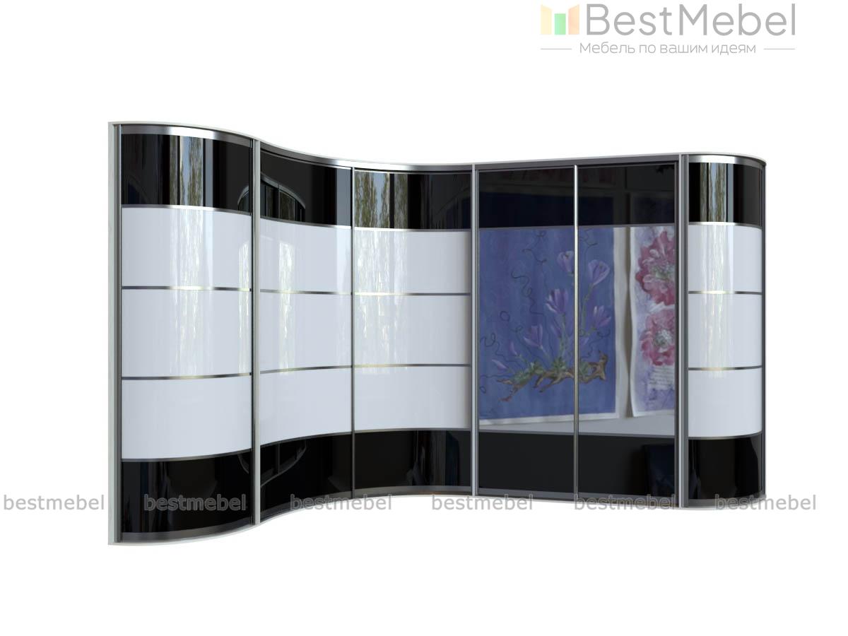 Шкаф радиусный Рори 1 BMS с фасадами волнообразной формы станет не только частью системы хранения, но и элементом эксклюзивного дизайна спальни или гостиной. Футуристичный вид шкафу придает сочетание матовых поверхностей с контрастным глянцем, профилем в оттенке серебро и ростовыми зеркалами. Отличную вместительность обеспечит комбинация распашных и раздвижных отделений, прямой секции и радиусных. Купить Шкаф радиусный Рори 1 BMS, подобрав оптимальный вариант внутреннего наполнения, приглашаем в наш интернет-магазин.