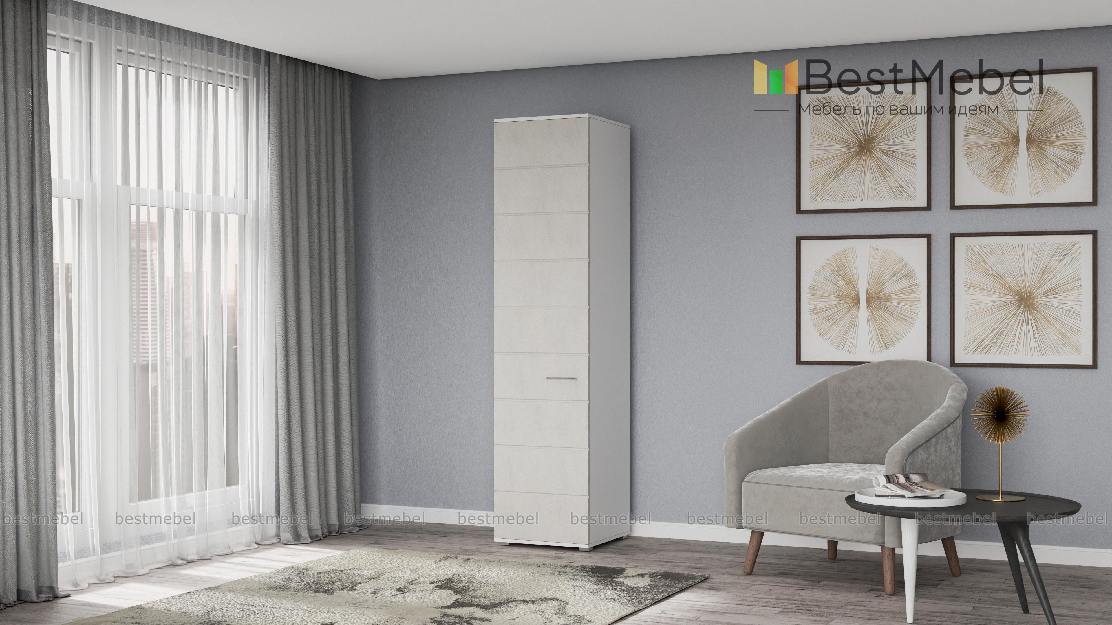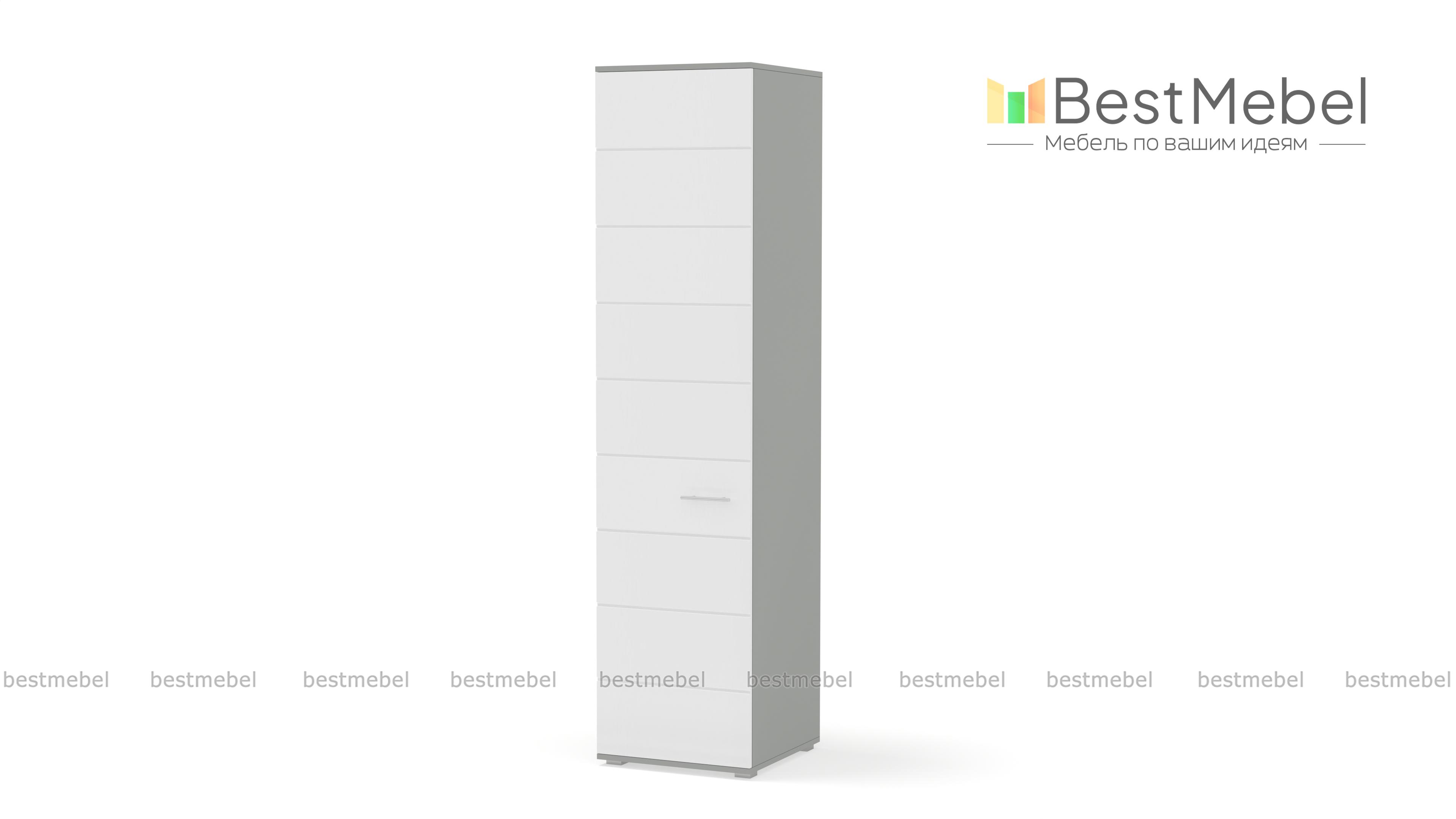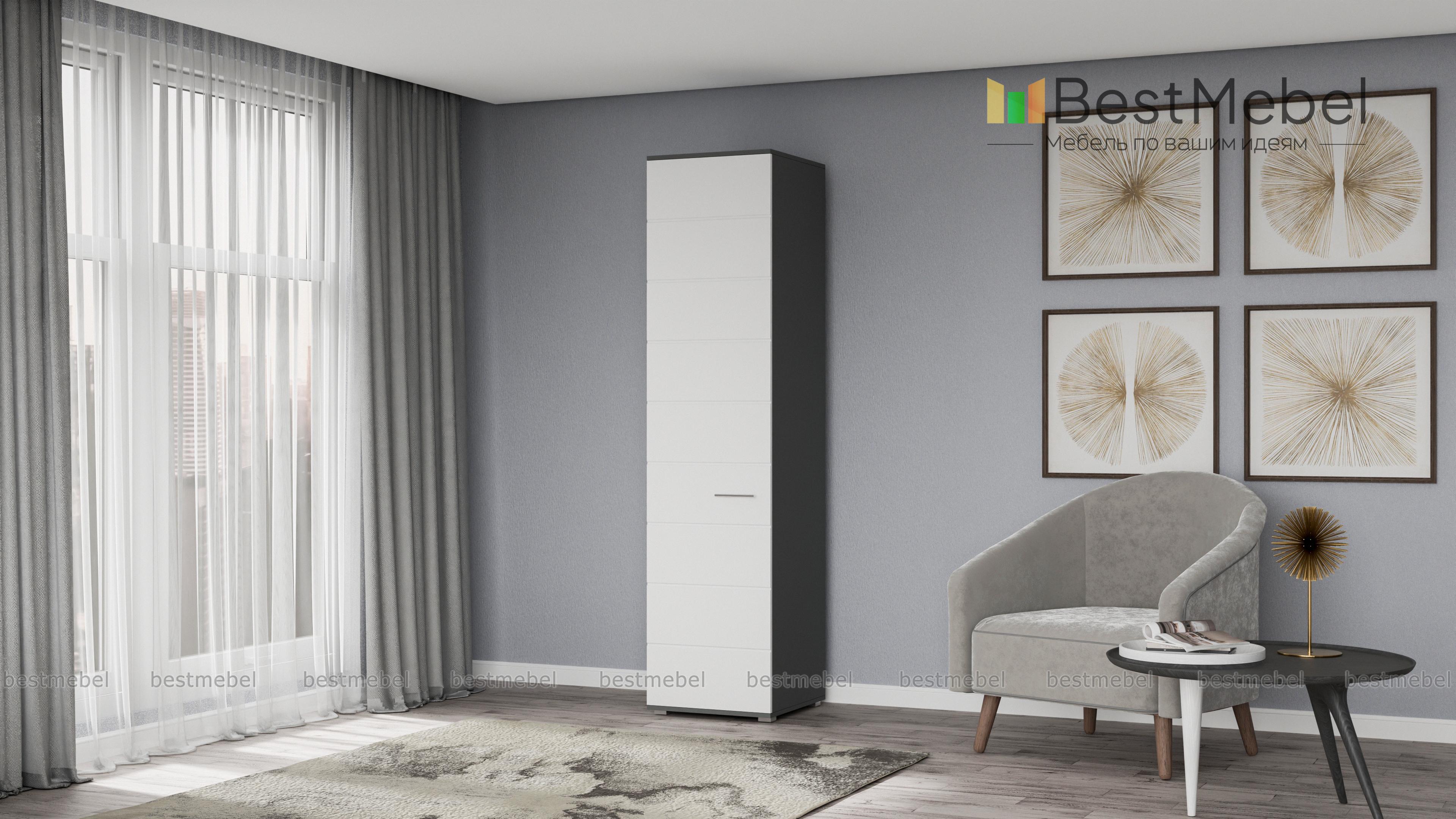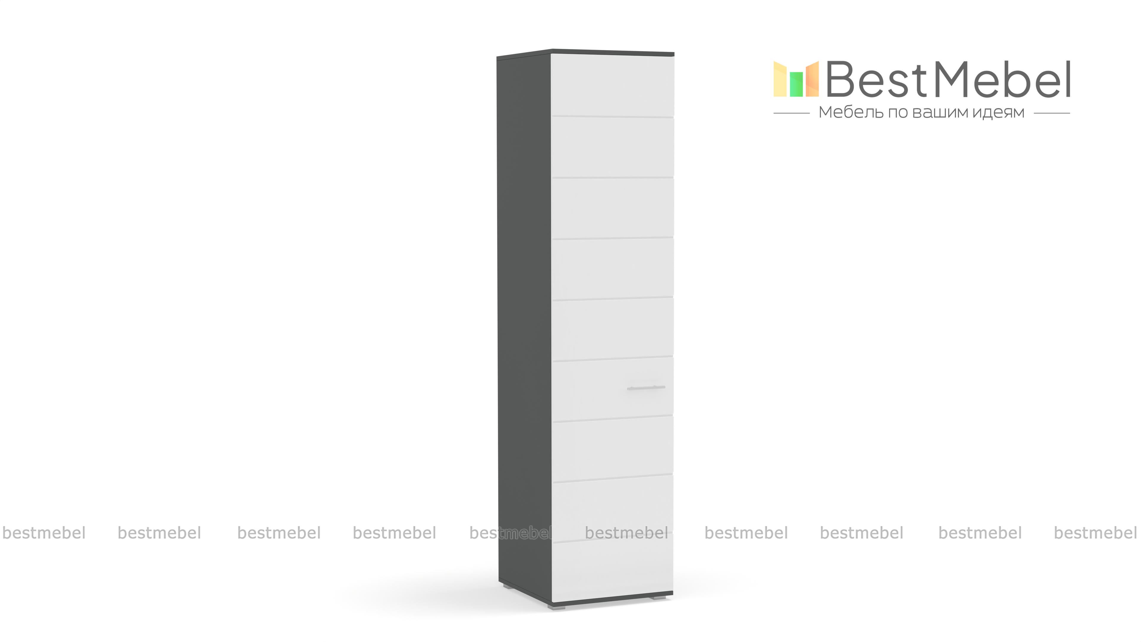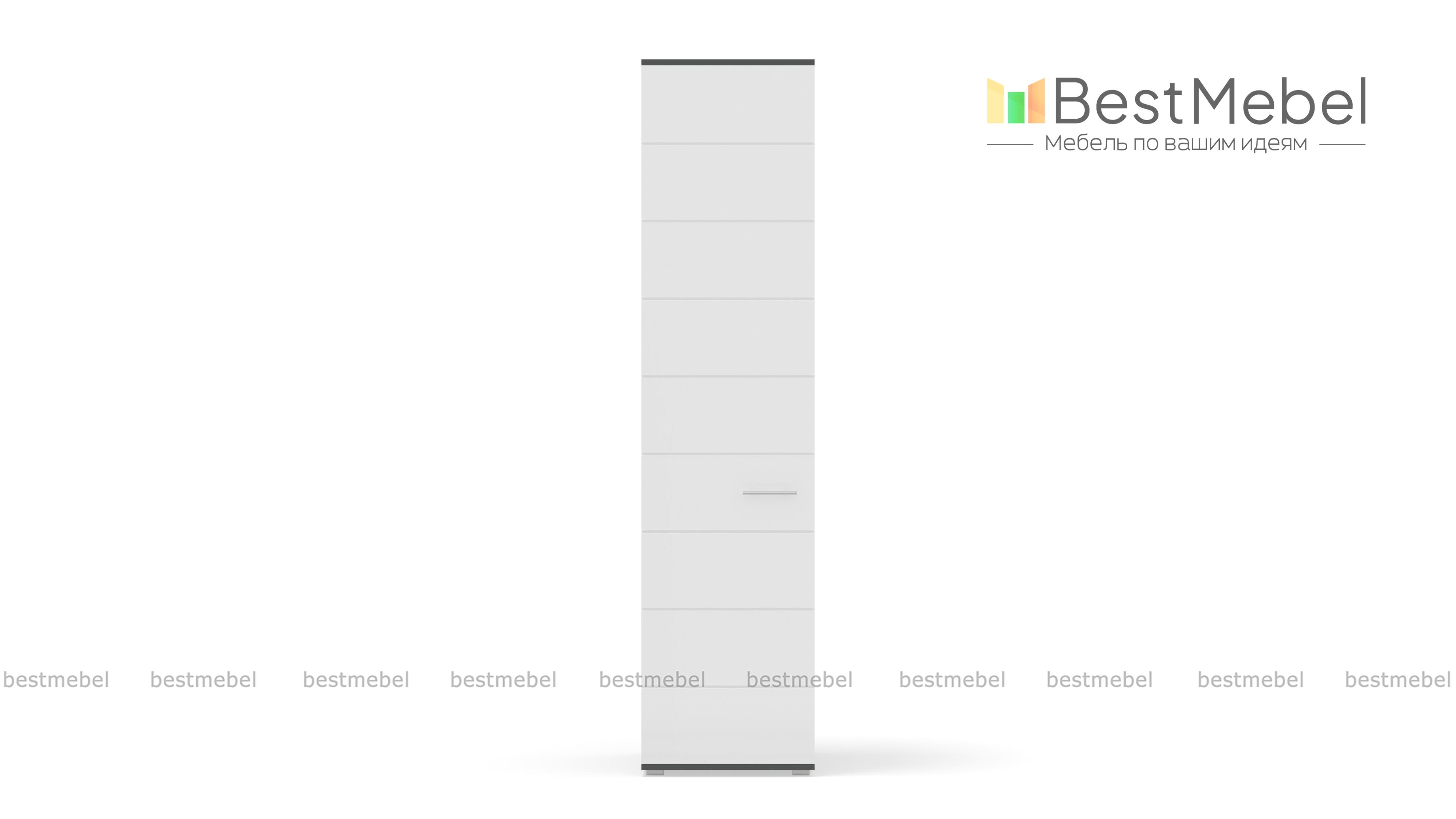 Пенал САМБА с полками BMS – лаконичная модель для спальни или гостиной в стиле минимализм. Компактный однодверный пенал выполнен в модной контрастной гамме – корпус темных оттенков и белый матовый фасад, декорированных горизонтальной фрезеровкой. За распашной дверцей находятся четыре вместительные полки, на которых удобно разместятся предметы гардероба и прочие домашние мелочи. Купить пенал САМБА с полками BMS по демократичной цене вы сможете в нашем интернет-магазине.