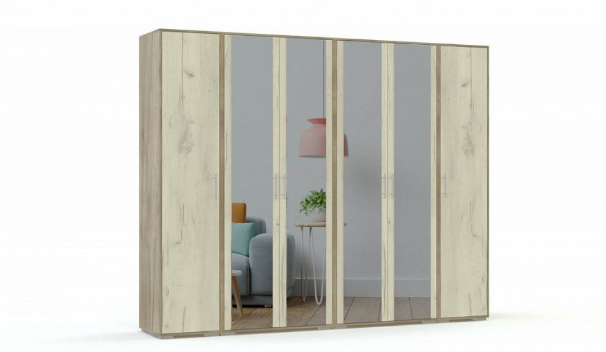 Распашной шкаф Берта 03 BMS характеризуется крупными габаритами и отличной вместительностью. Шкафная группа включает в себя два пенала и два двухдверных шкафа, оборудованных бельевыми полками и штангами. Благодаря лаконичному дизайну и исполнению в нейтральных древесных тонах модель легко вписывается в современные интерьеры, а зеркальный фасад визуально облегчает конструкцию и придает комнате глубину. Купить распашной шкаф Берта 03 BMS для меблировки просторной спальни или прихожей вы сможете в нашем интернет-магазине.