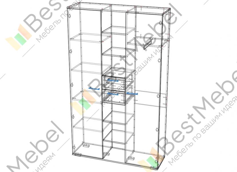 Распашной шкаф Бьюти BMS – многофункциональная модель, которая сможет дополнить интерьер современной гостиной, спальни или молодежной комнаты. Конструкция представляет собой комбинацию двух симметрично расположенных пеналов – платяного и бельевого, открытых полок и выдвижных ящиков для мелочей. Разноплановые отделения помогут оптимизировать хранение одежды, книг и множества бытовых мелочей, сэкономив полезную площадь. Купить распашной шкаф Бьюти BMS по демократичной цене приглашаем в наш интернет-магазин.