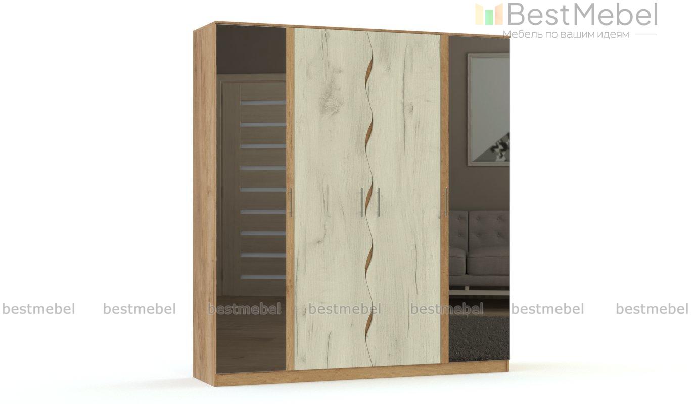 Распашной шкаф Марлин BMS станет не только практичным дополнением, но и центральным элементом дизайна современной спальни. В оформлении фасада шкафа эффектно сочетаются зеркальные полотна и теплый золотой крафт с волнообразными вырезами и контрастными вставками. Четырехдверная модель отличается прекрасной вместительностью и легко решит проблему хранения гардероба и постельных принадлежностей. Купить распашной шкаф Марлин BMS с возможностью выбора размеров приглашаем в наш интернет-магазин.