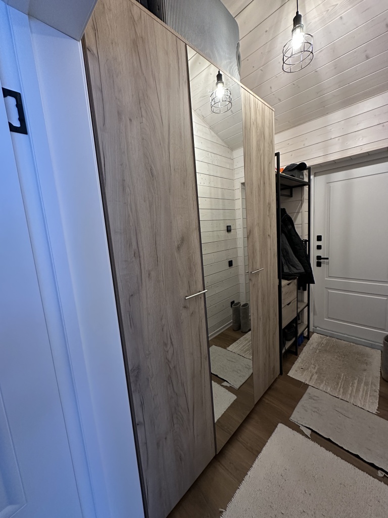 Заказ 00000345090, шкаф распашной 1400х2300х400. Спасибо за шкаф, понравился цвет фасадов, качество тоже на высоте, достаточное количество полок. По поводу дизайна - мне показалось, что было бы удобнее, если бы ручки расположить вертикально, но это не критично. Для небольшой прихожей такой шкаф - отличное решение.
