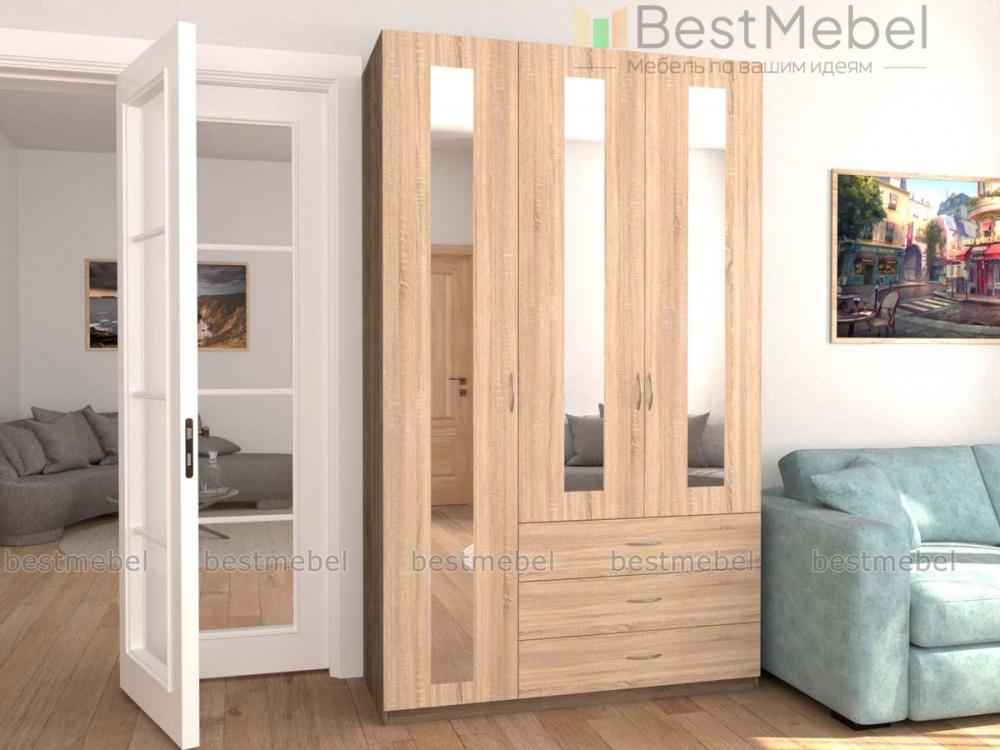 Распашной шкаф Паулина 31.1 BMS гармонично впишется в современный интерьер и поможет вам организовать удобное хранение одежды и постельного белья. Трехдверная модель оборудована отделениями с полками и штангой и дополнена тремя просторными выдвижными ящиками. Декорированный по фасаду зеркалами, шкаф удобен для примерки и визуально расширяет границы комнаты. Купить распашной шкаф Паулина 31.1 BMS приглашаем в наш интернет-магазин, подобрав наиболее подходящее цветовое решение.