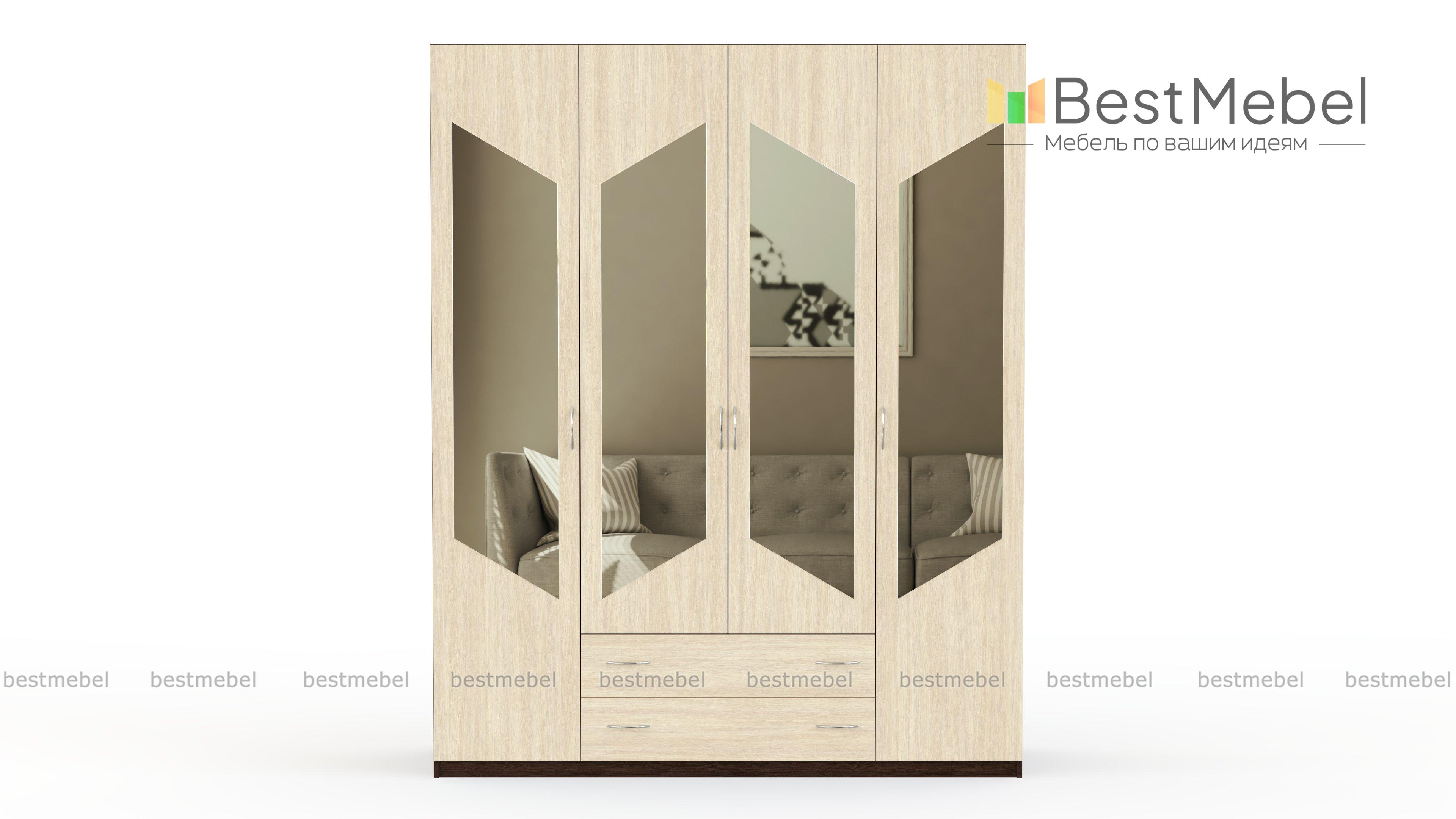 Распашной шкаф Паулина 38.3 BMS сочетает в себе практичность классической конструкции и оригинальный дизайн, надежность и доступную цену. Четырехдверная модель оборудована платяным отделением, двумя бельевыми и широкими выдвижными ящиками в нижней части. Зеркала на фасаде придают эффектный вид строгому распашному шкафу и делают комнату визуально просторнее и светлее. Купить распашной шкаф Паулина 38.3 BMS и разместить большое количество вещей вам поможет наш интернет-магазин.
