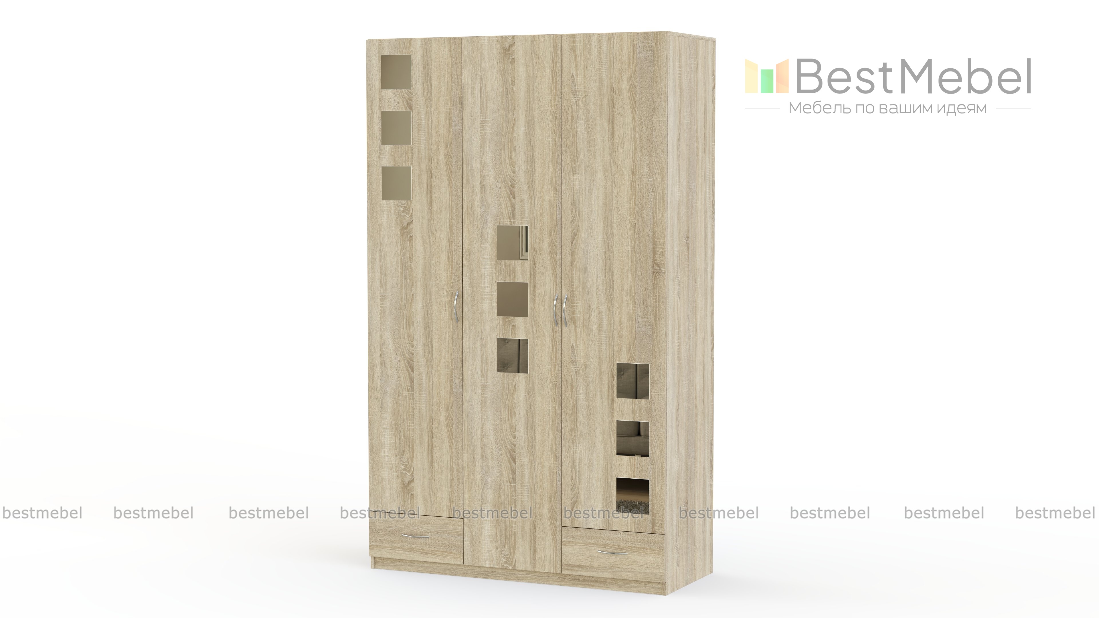 Распашной шкаф Паулина 39 BMS имеет традиционную, проверенную временем конструкцию, но смотрится актуально благодаря лаконичному фасаду с геометричным зеркальным декором. Трехдверная модель оборудована отделением со штангой, бельевыми полками и двумя выдвижными ящиками для хранения мелочей. Качественная фурнитура станет гарантией комфортного пользования и долговечности. Купить распашной шкаф Паулина 39 BMS приглашаем на сайт нашего интернет-магазина.