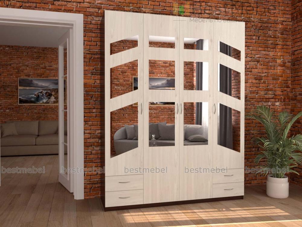 Распашной шкаф Паулина 53.1 BMS дополнит интерьер современной квартиры удобной и эстетичной системой хранения. Четырехдверная модель, выполненная в светлых тонах, отличается эффектным дизайном фасада, декорированного фигурными зеркалами. Компактно разместить предметы гардероба и постельные принадлежности помогут отделения с полками и штангой, а также четыре выдвижных ящика для мелочей. Купить распашной шкаф Паулина 53.1 BMS вы сможете в нашем интернет-магазине по доступной цене.